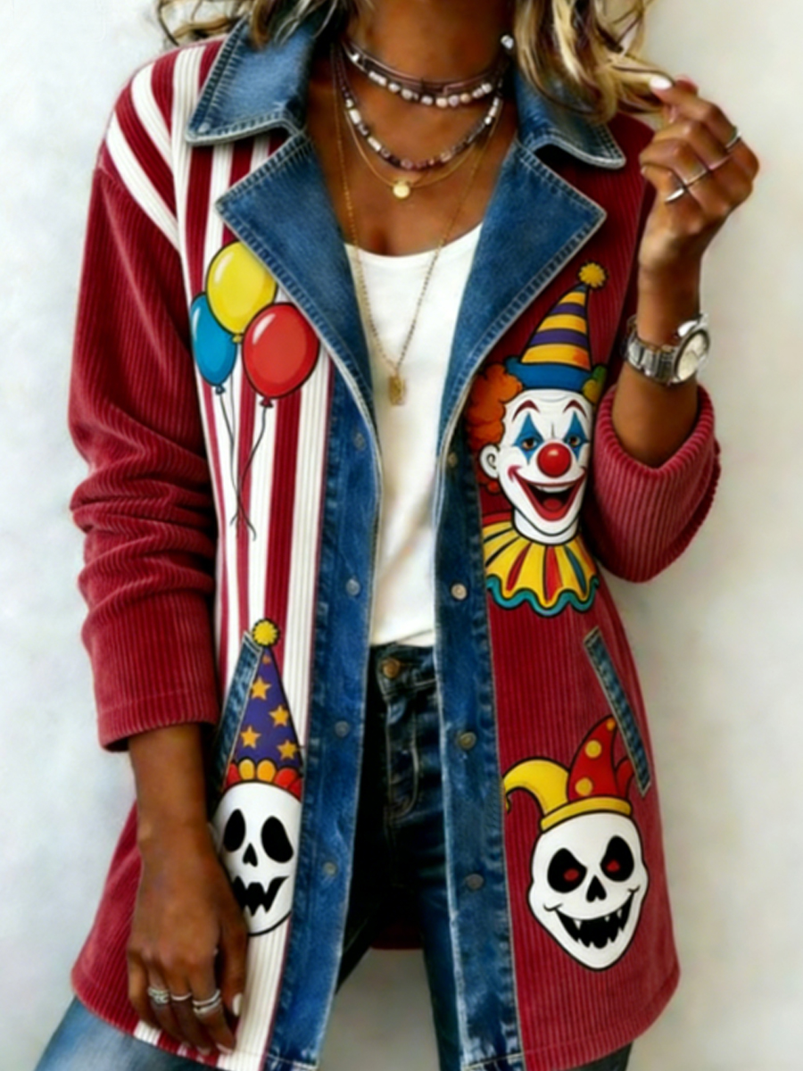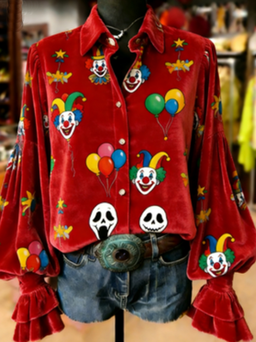Frauen Köln Karneval Clown Print lässig Langarm T-Shirt