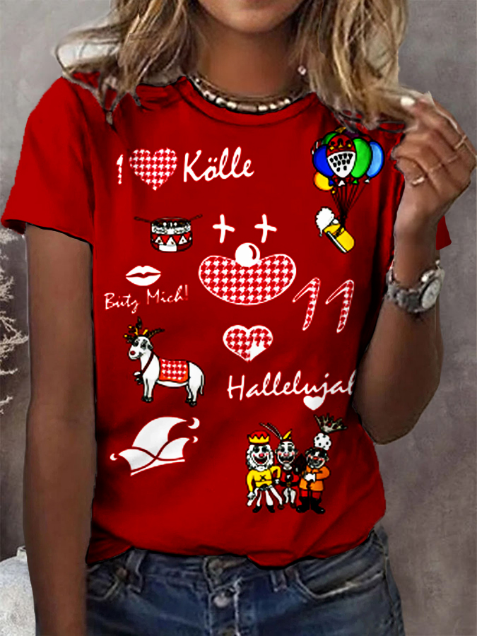 Damen-Kurzarm-T-Shirt KöLnisch-Karnevals-Print