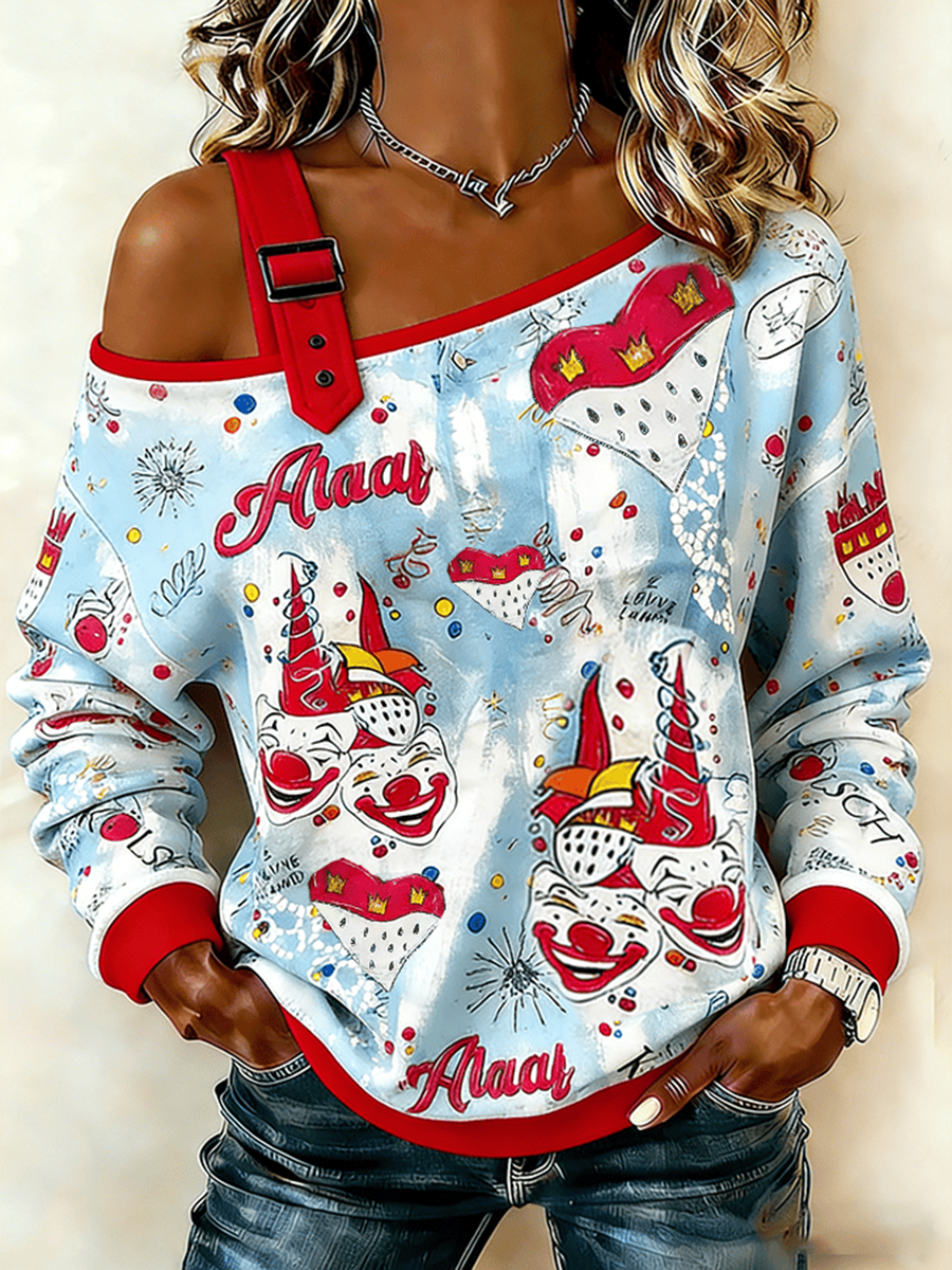 Damen Kölner Karneval Print lässig schulter freies Sweatshirt