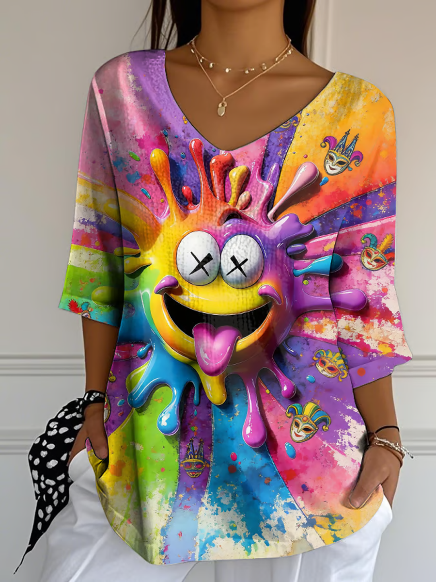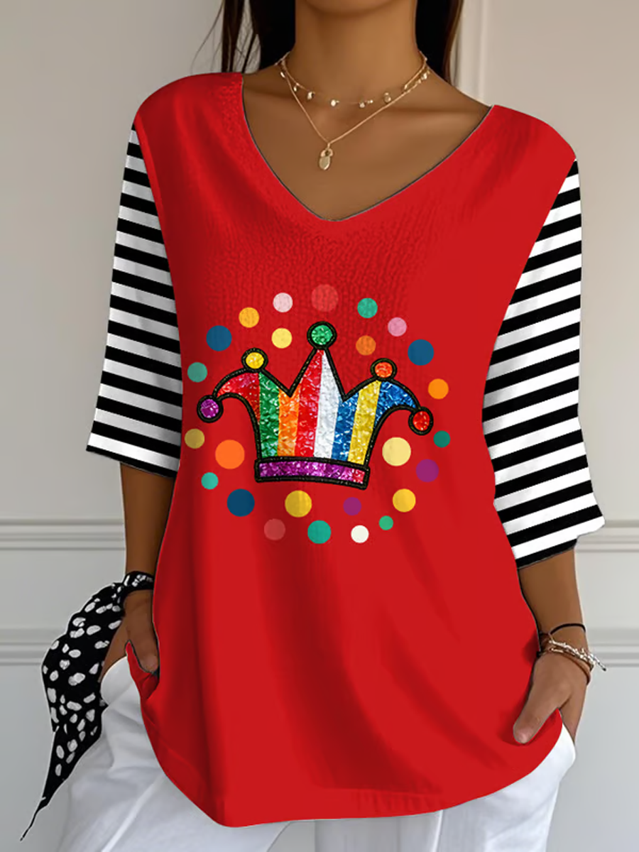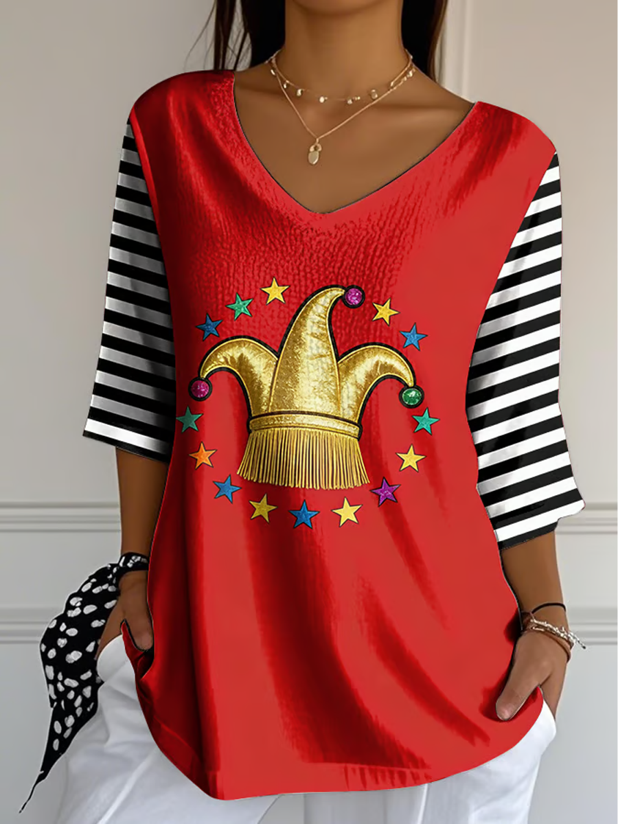 Frauen Köln Karneval Clown Print Samt Shirt