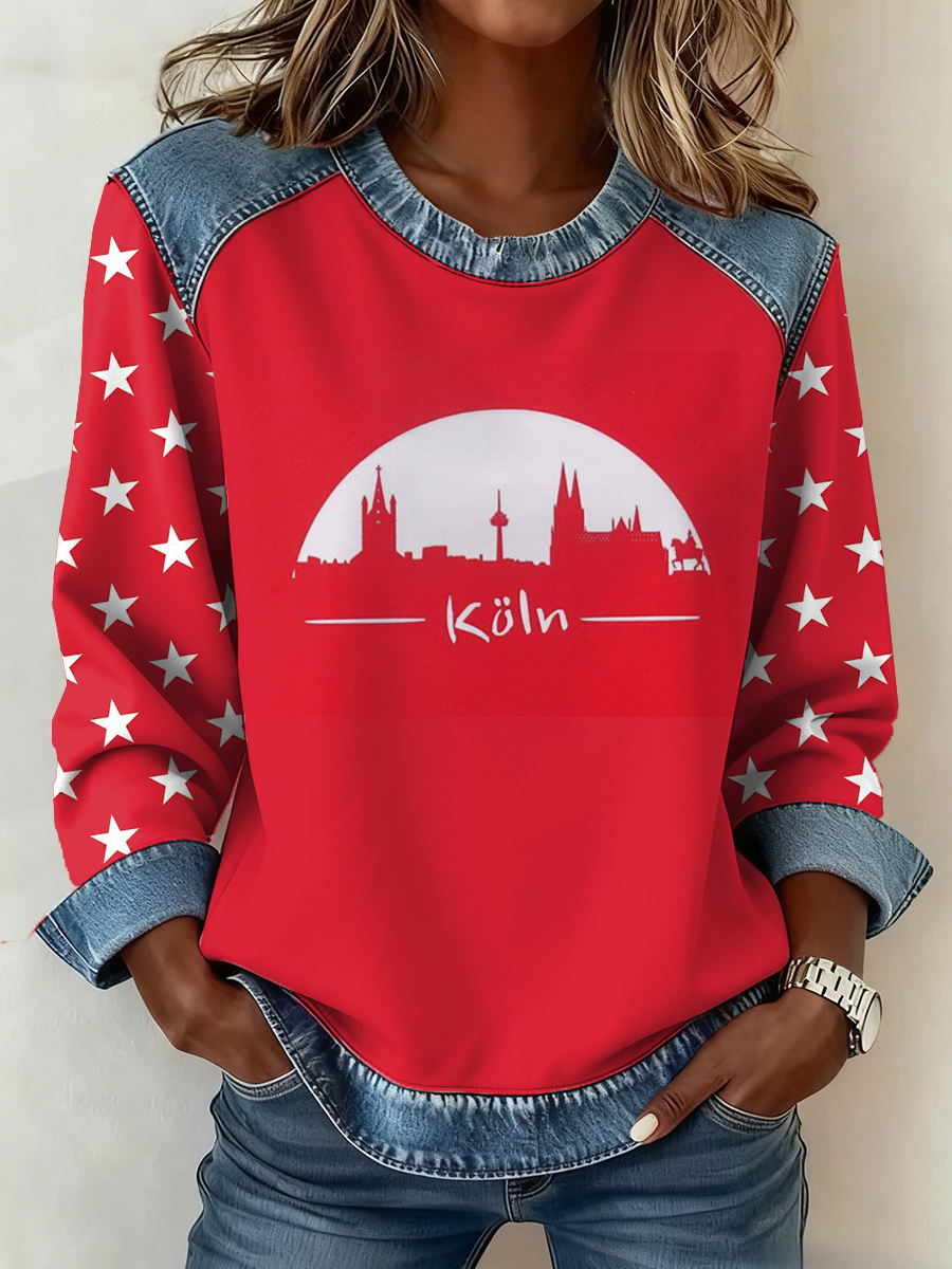 Frauen Deutschland Köln Karneval Muster Patchwork Kunst Sweatshirt