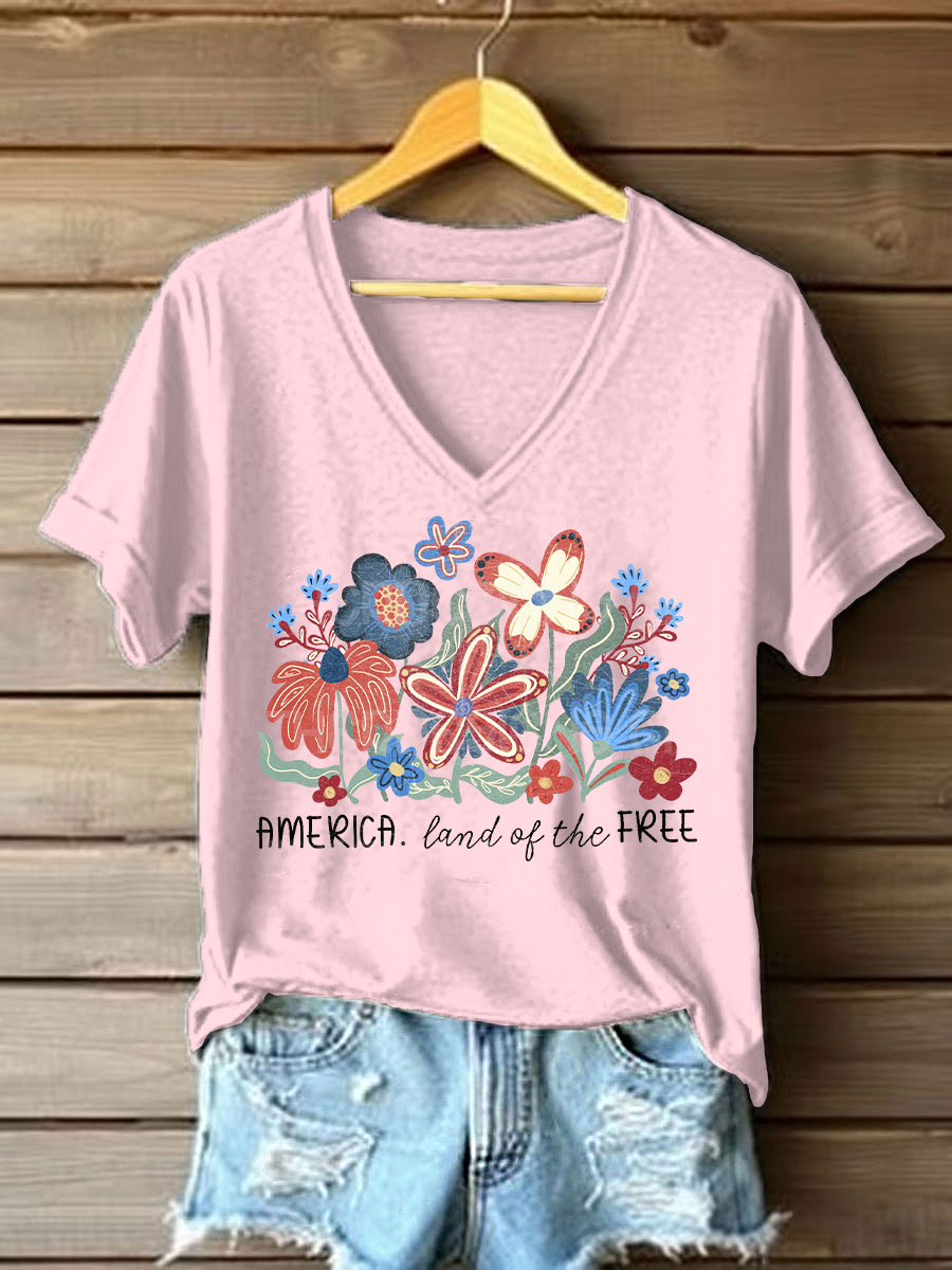 Frauen amerikanische Flagge Blumen druck lässig T-Shirt