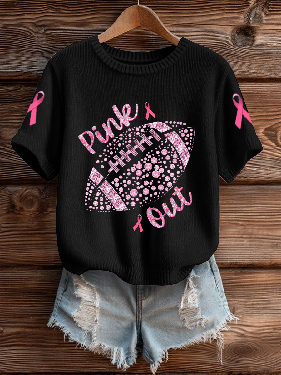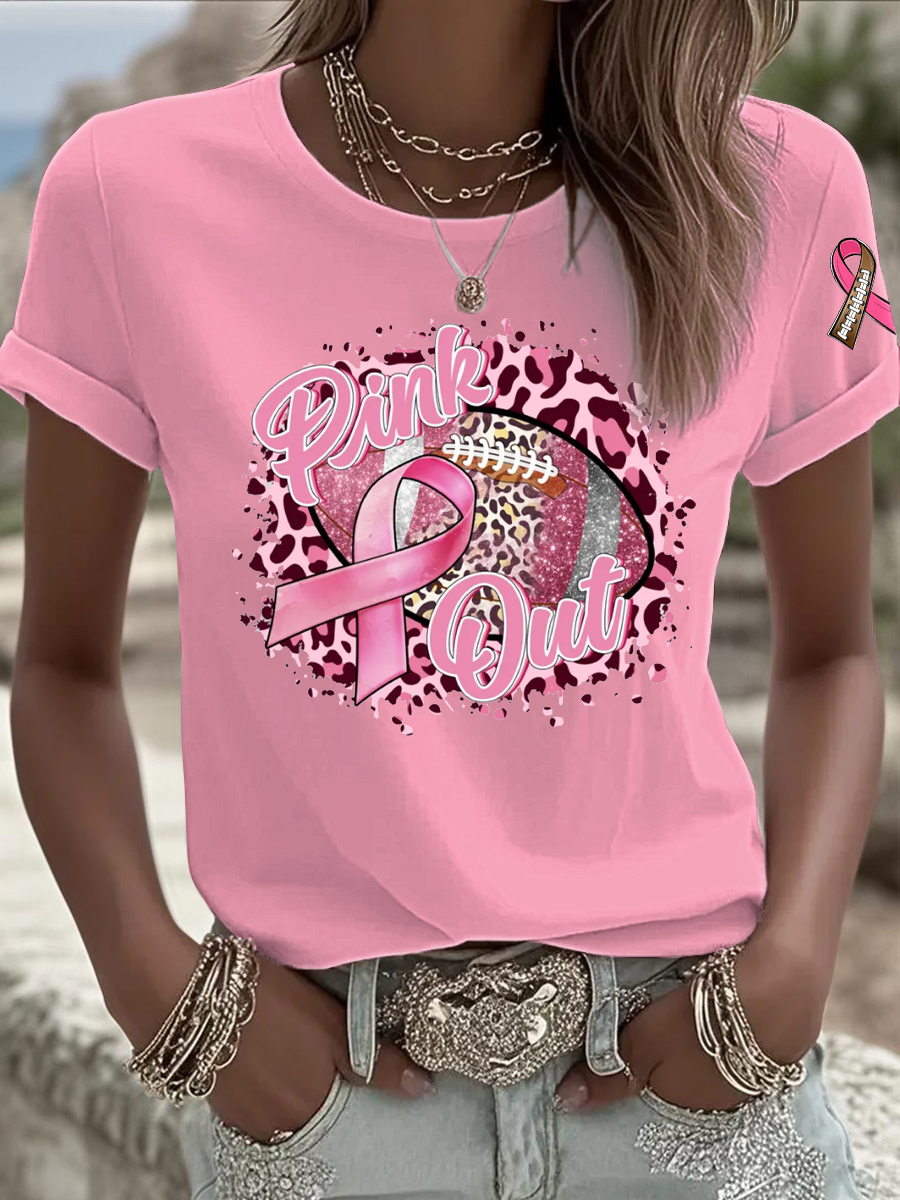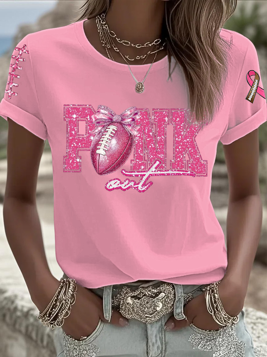 Frauen Brustkrebs Rosa Fußball Print T-Shirt