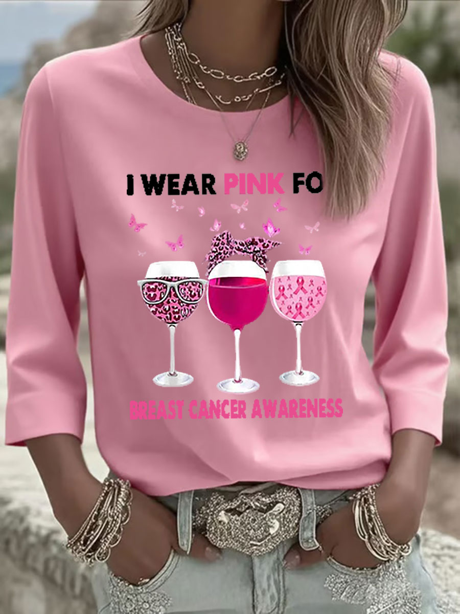 Frauen Brustkrebs rosa bedrucktes lässiges Top