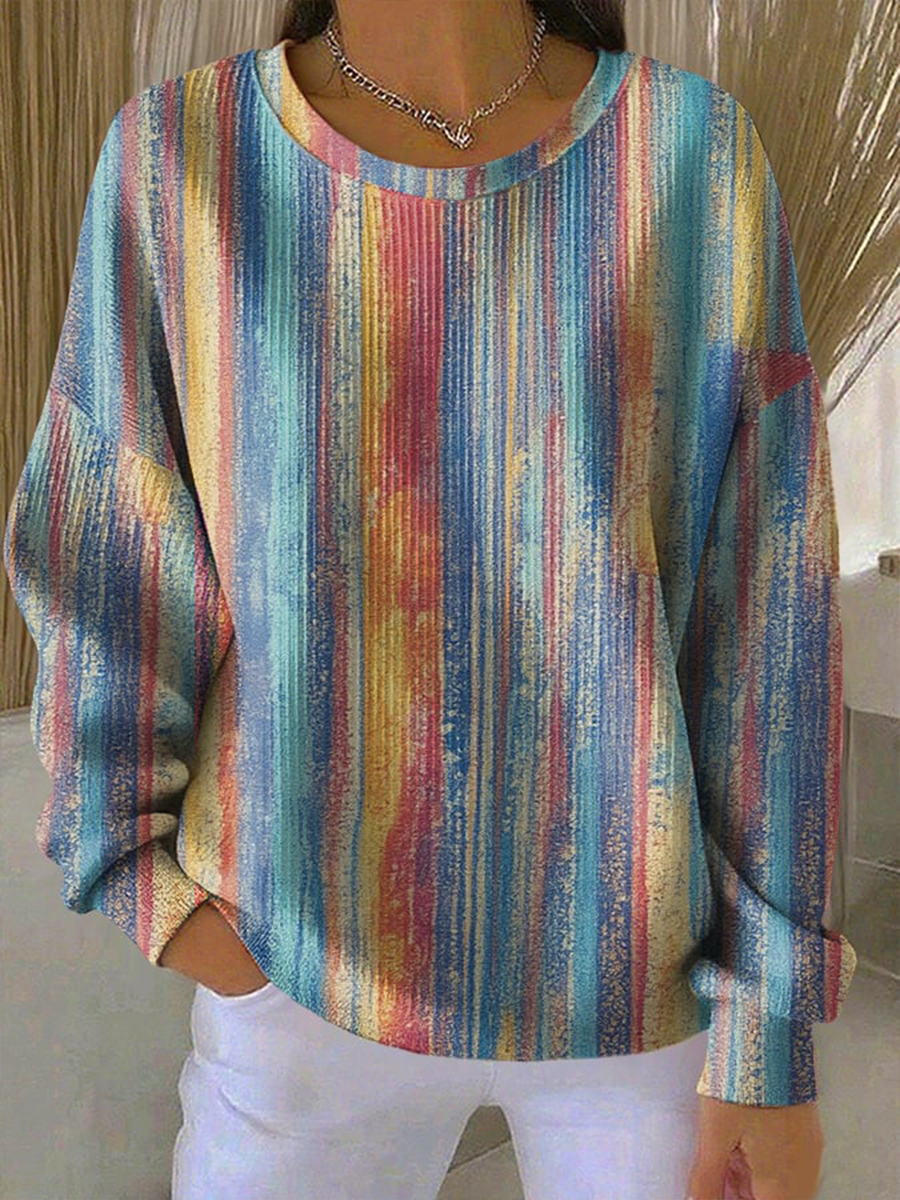 Damen-Sweatshirt mit mehrfarbig gestreiftem Muster