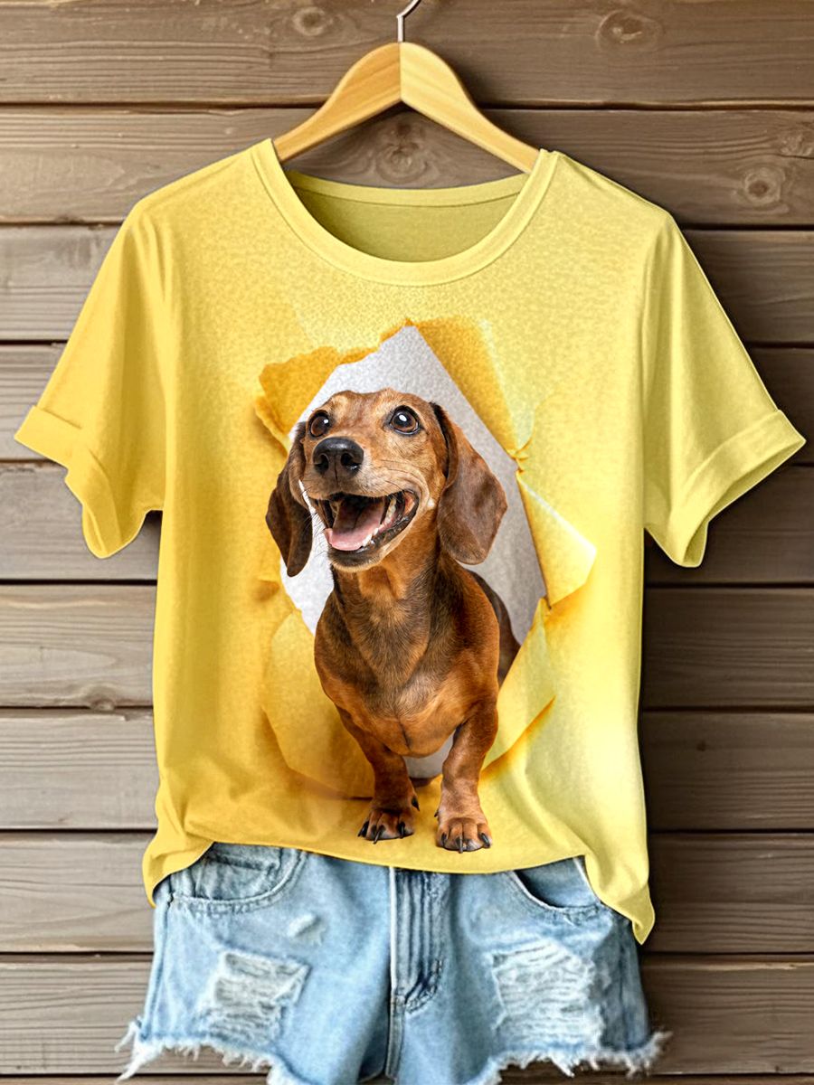 Frauen Lustiges Dackel Kunstdruck T-Shirt