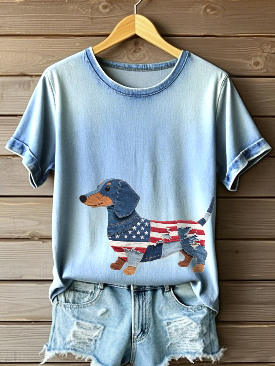 Dackel-Patchwork-Kunst-T-Shirt zum Unabhängigkeit stag der Frauen