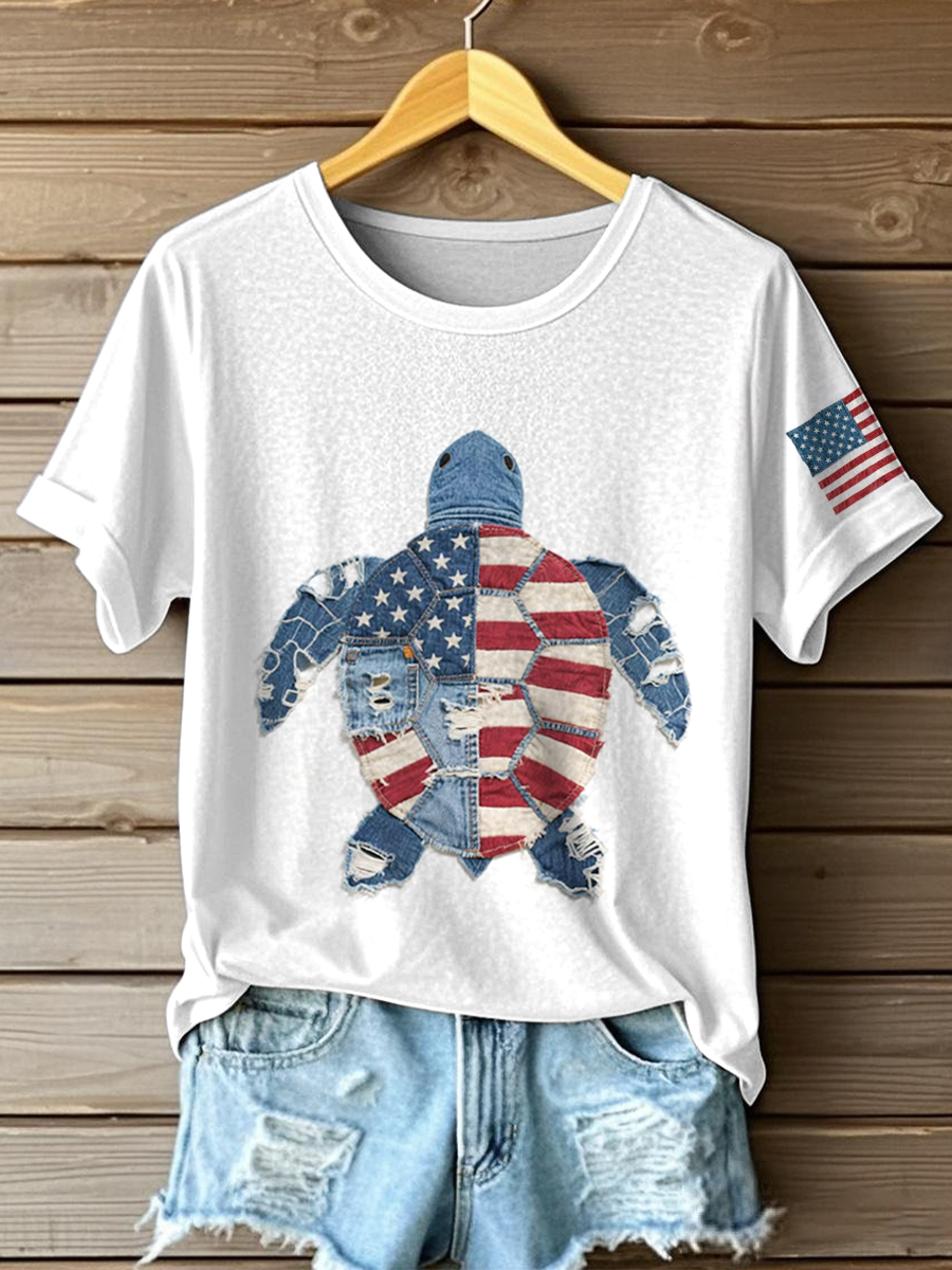 Frauen Unabhängigkeit stag inspirierte Meeres schildkröte Muster Patchwork Kunst T-Shirt