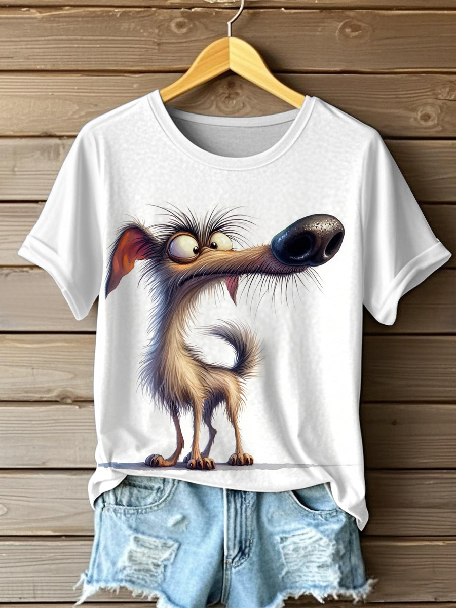 Frauen lustiges verrücktes Haar Cartoon-Hunde druck lässiges T-Shirt