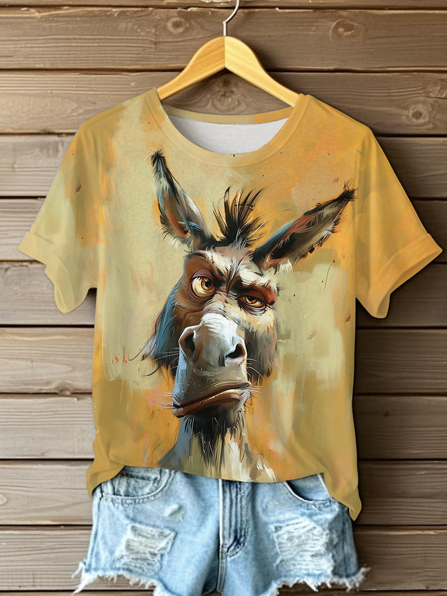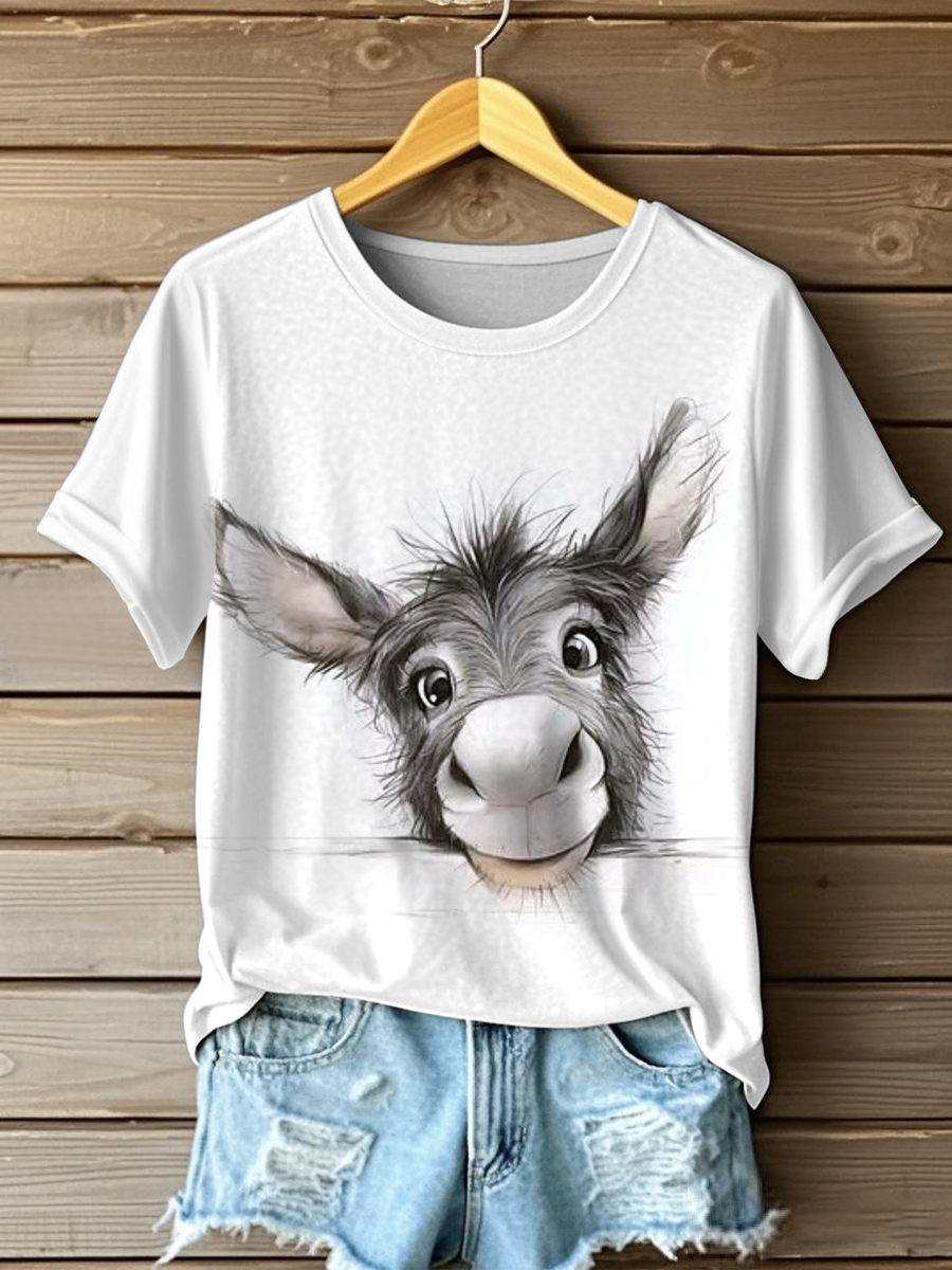 Lustiges süßes Esel-Print-T-Shirt für Damen