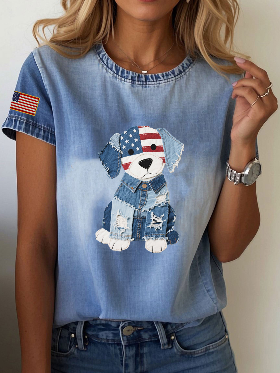 Frauen Unabhängigkeit stag Denim Hund T-Shirt