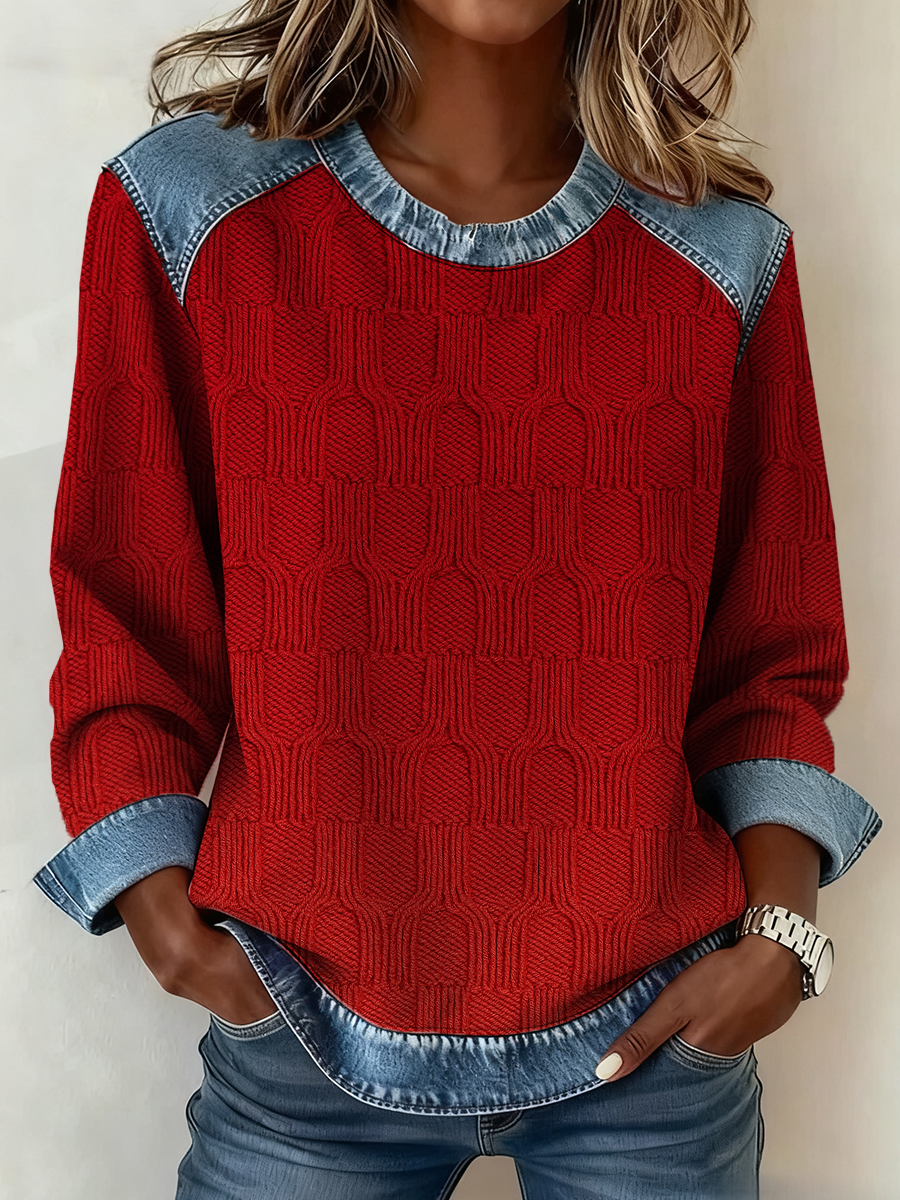 Sweatshirt mit strukturiertem Denim-Kragen für Damen