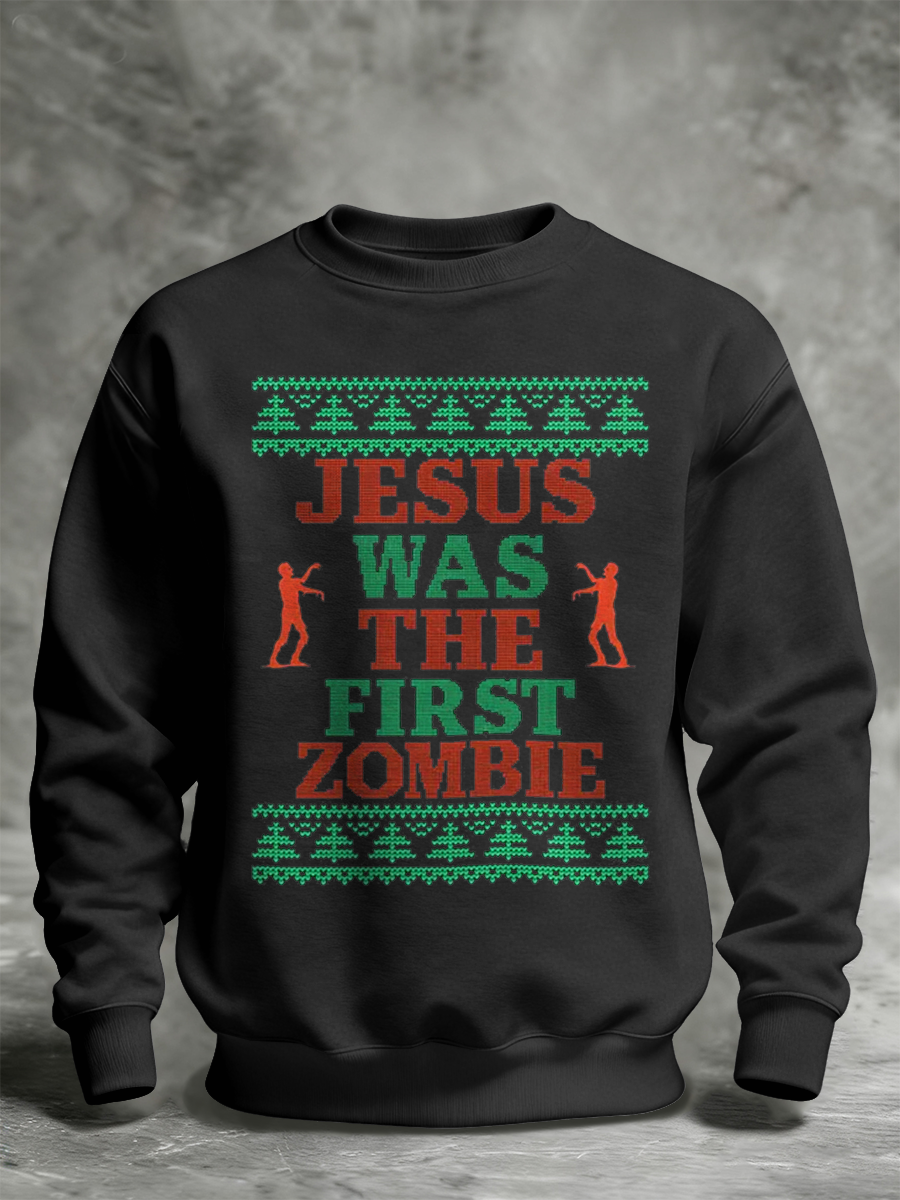 Unisex Lustige Weihnachten Jesus war das erste Zombie bedruckte Sweatshirt