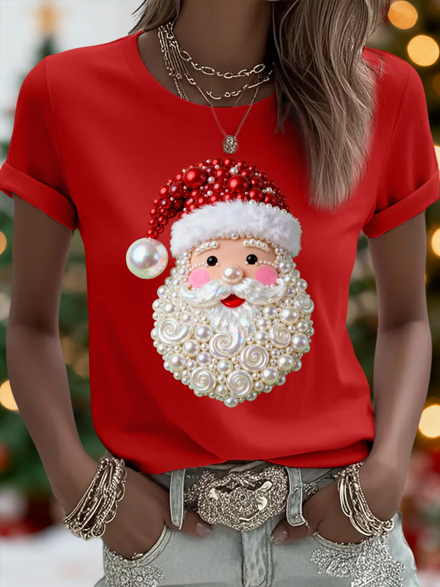 Weihnachts perle Weihnachts mann Print Casual T-Shirt für Frauen