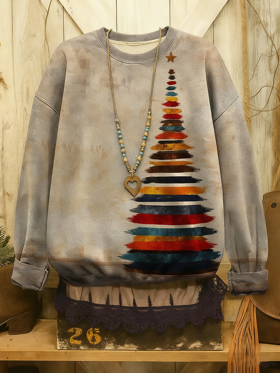 Damen Vintage Weihnachts baum Kunstdruck Casual Sweatshirt