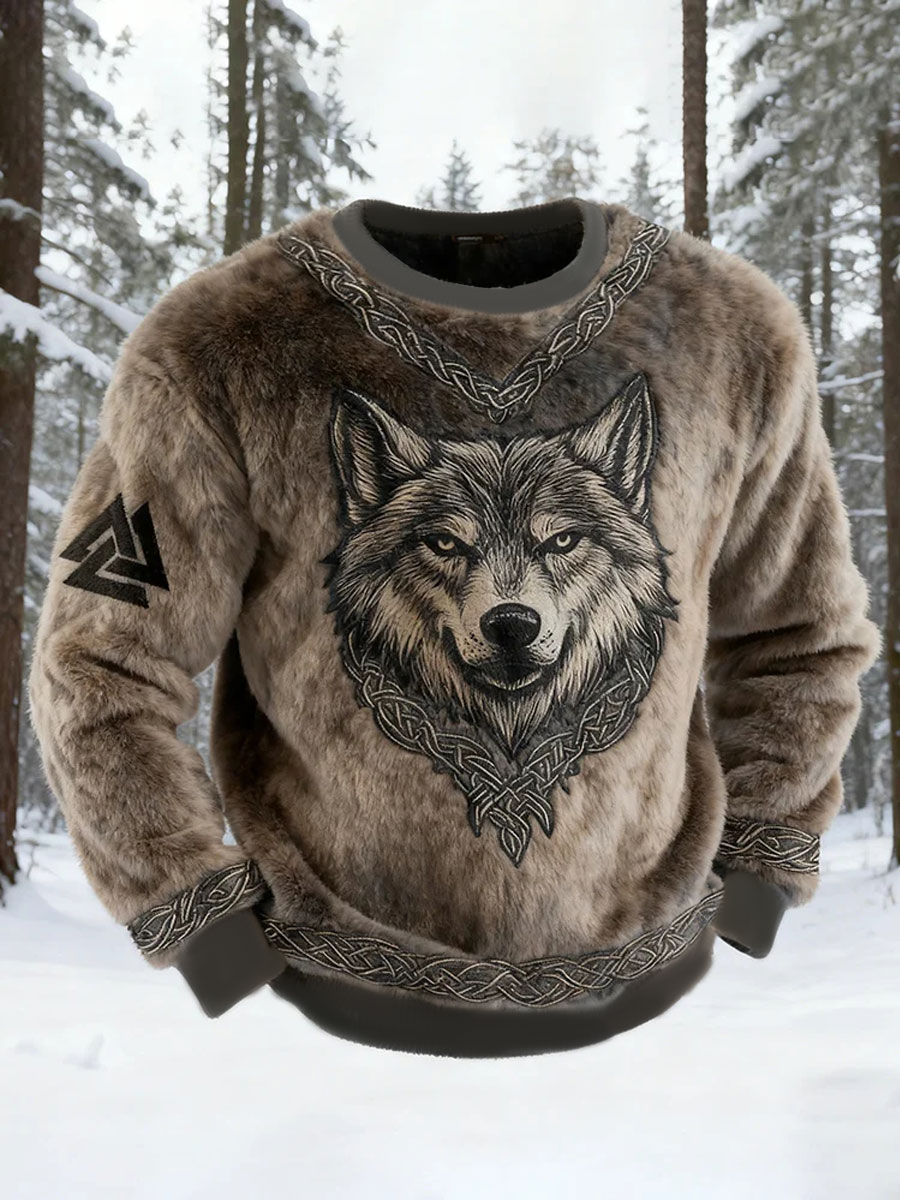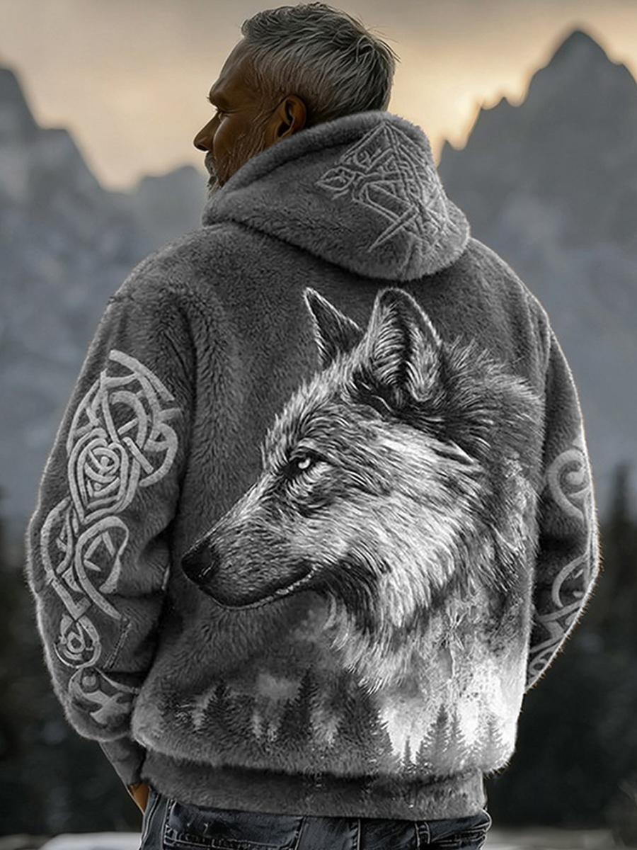 Herren Viking Celtic Wolf Muster Kunst Casual Flanell Hoodie