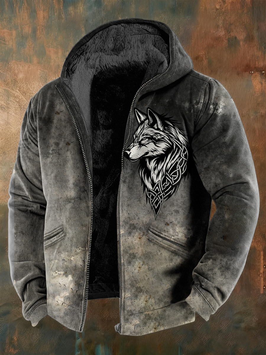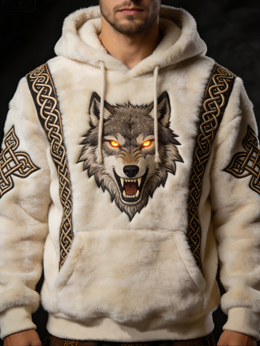 Herren Herren Viking Celtic Wolf Muster Kunst Casual Flanell Hoodie