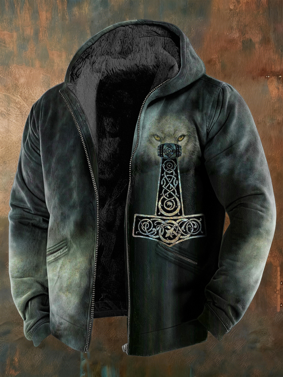 Herren Viking Celtic Art Plüsch Gemütliche warme Kapuzen jacke mit Reiß verschluss
