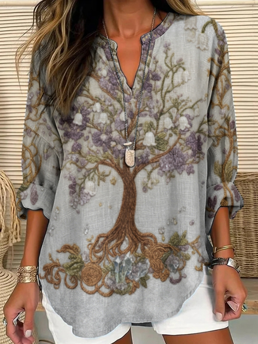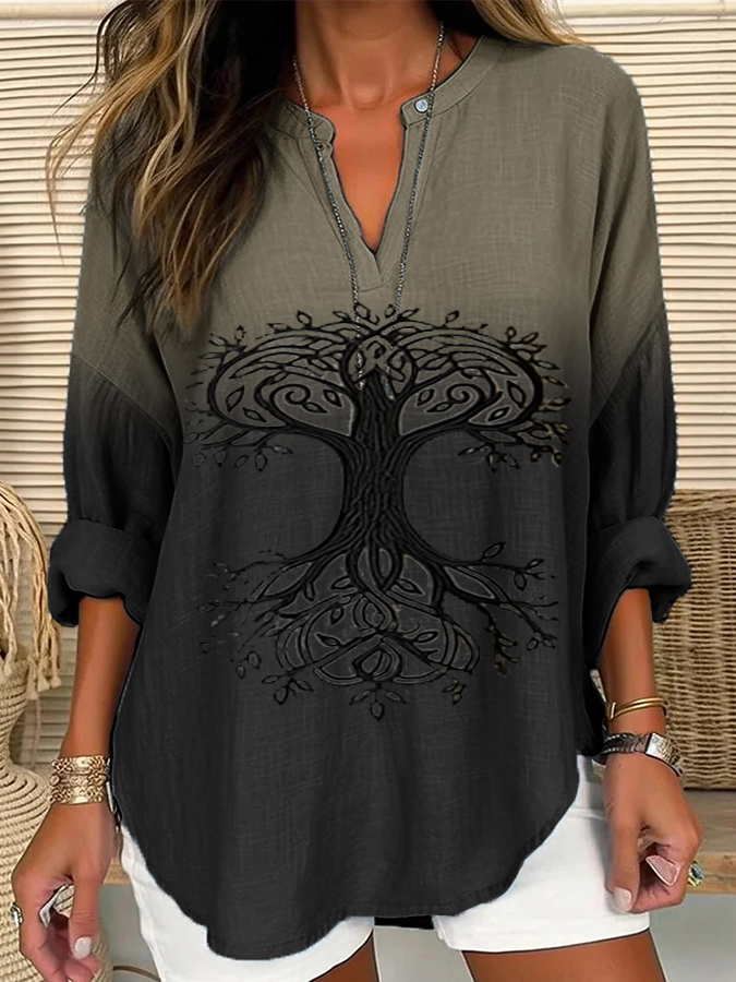 Frauen Wikinger Leben von Baum Kunst Leinen Print Freizeit hemd