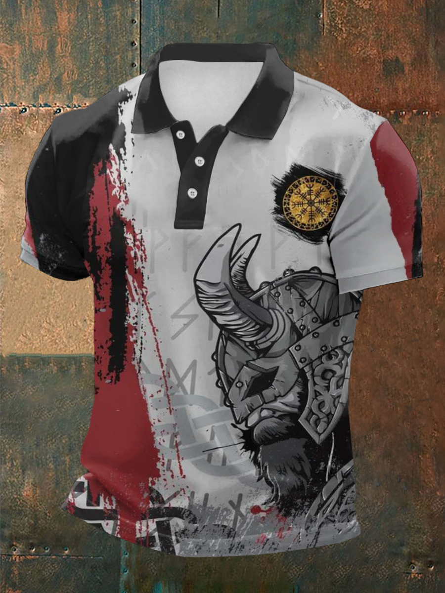 Herren Viking Print Kurzarm Hemd