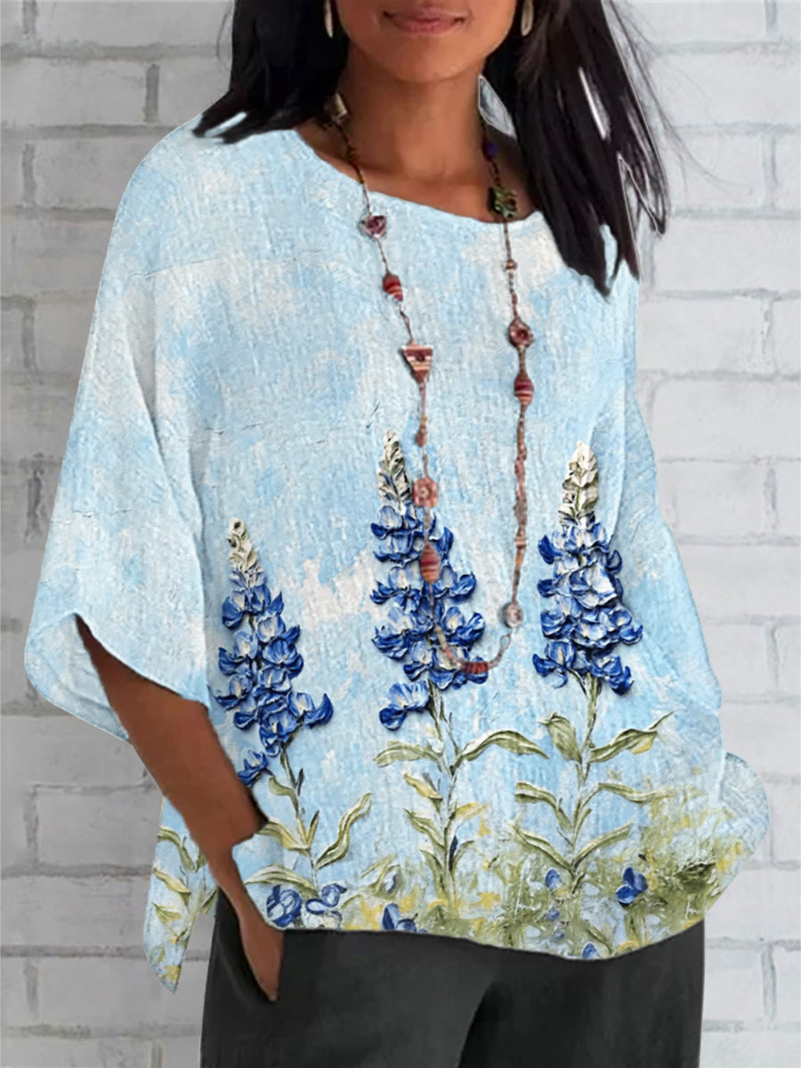 Damen-Top aus Baumwolle und Leinen Texas Blue bonnet