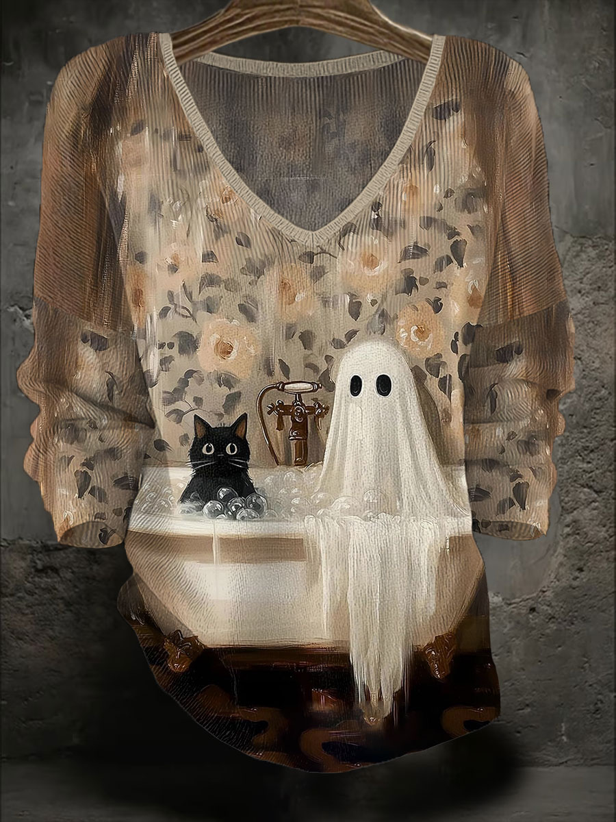 Damen Halloween Kunst bedruckte lässige Tops