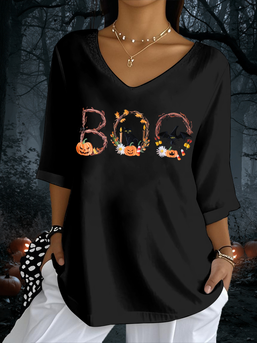 Damen Halloween Print Casual T-Shirt