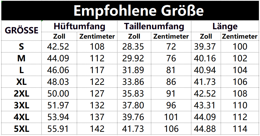 Größen tabelle: