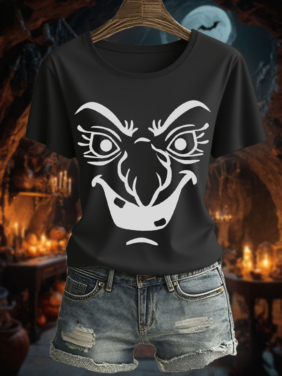 Bedrucktes T-Shirt "Ruhende Hexen gesicht" der Frauen