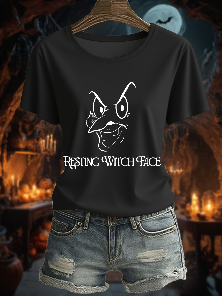 Bedrucktes T-Shirt "Ruhende Hexen gesicht" der Frauen
