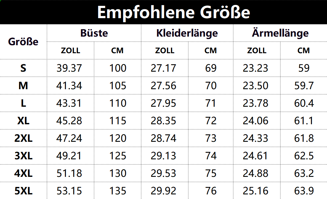 Größen tabelle: