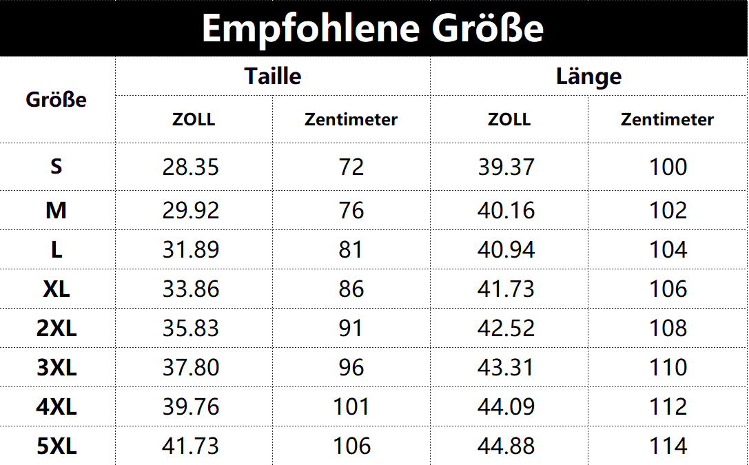 • Vorschlag:* Diese Daten wurden aus der manuellen Messung des Produkts erhalten, es kann um 0,03-0,06 ZOLL/1-3 CM aus geschaltet sein