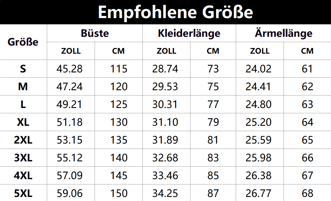 - Vorschlag:* Diese Daten wurden aus der manuellen Messung des Produkts erhalten, es kann um 0,03-0,06 ZOLL/1-3 CM aus geschaltet sein