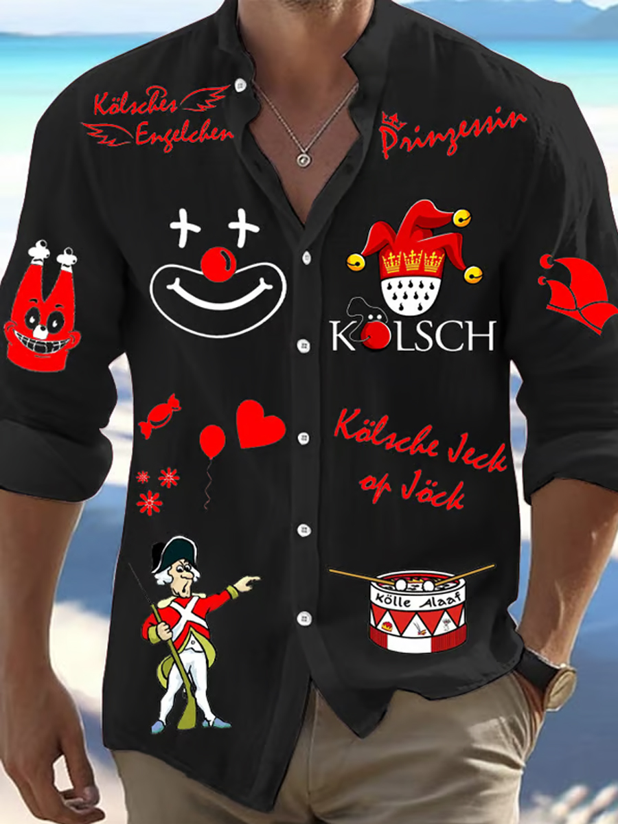 Cologne Carnival Clown Print Herren Lässiges Langarm-Shirt