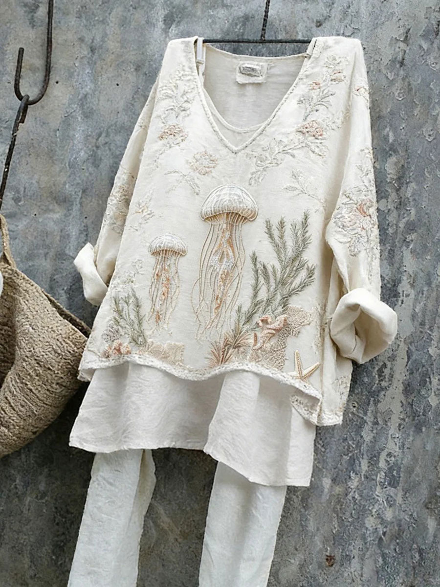 Damen-Alltags-Top mit Meeres-Tier-Print