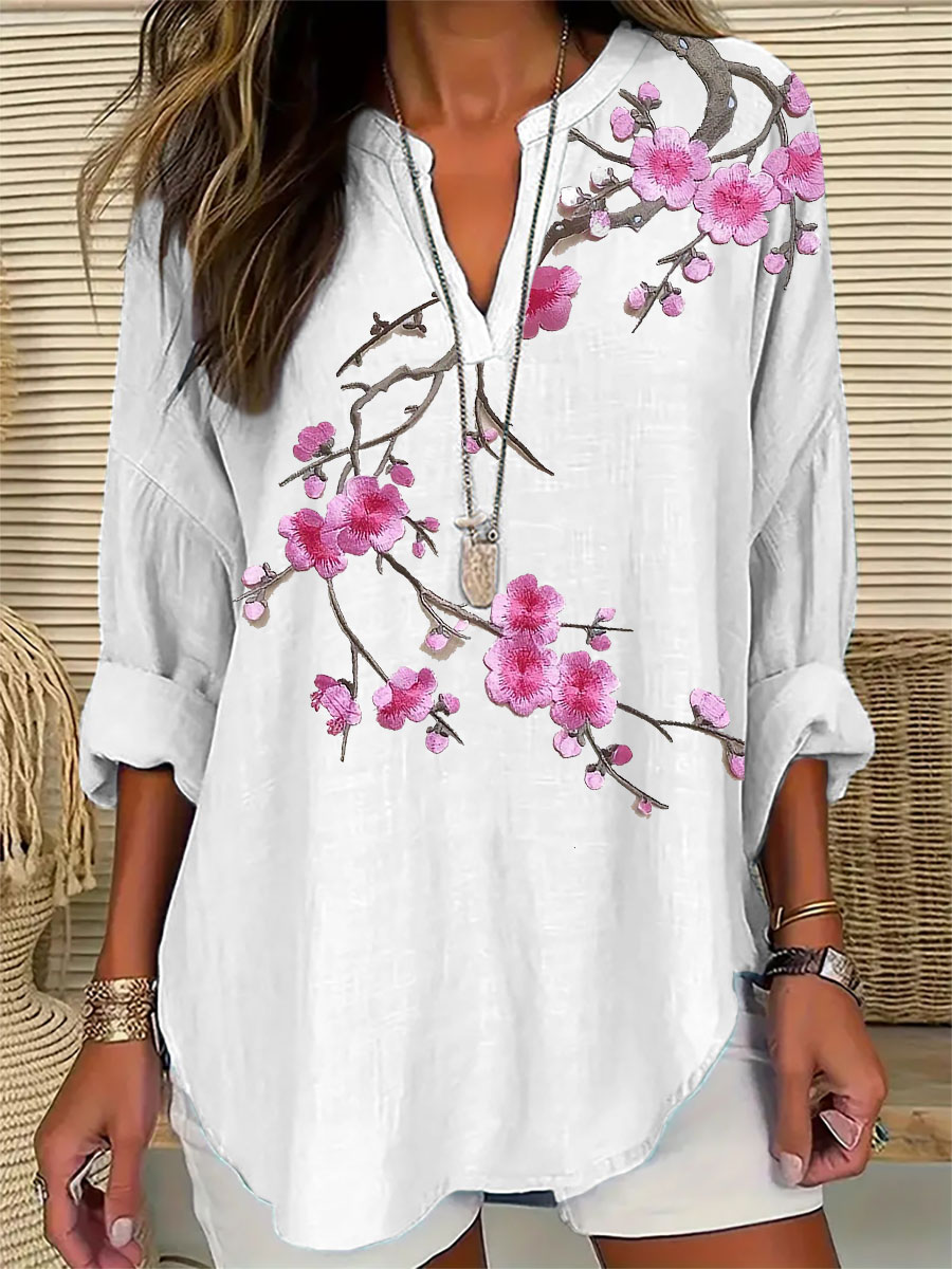 Damen-Blumen-Stickerei-Print-Casual-Top