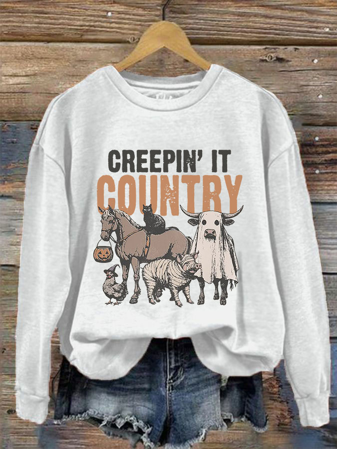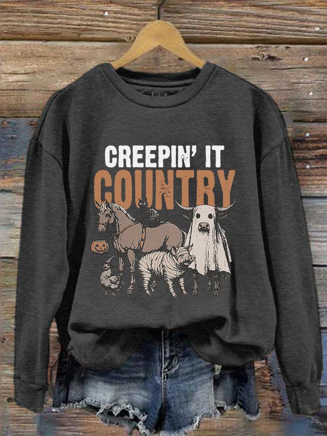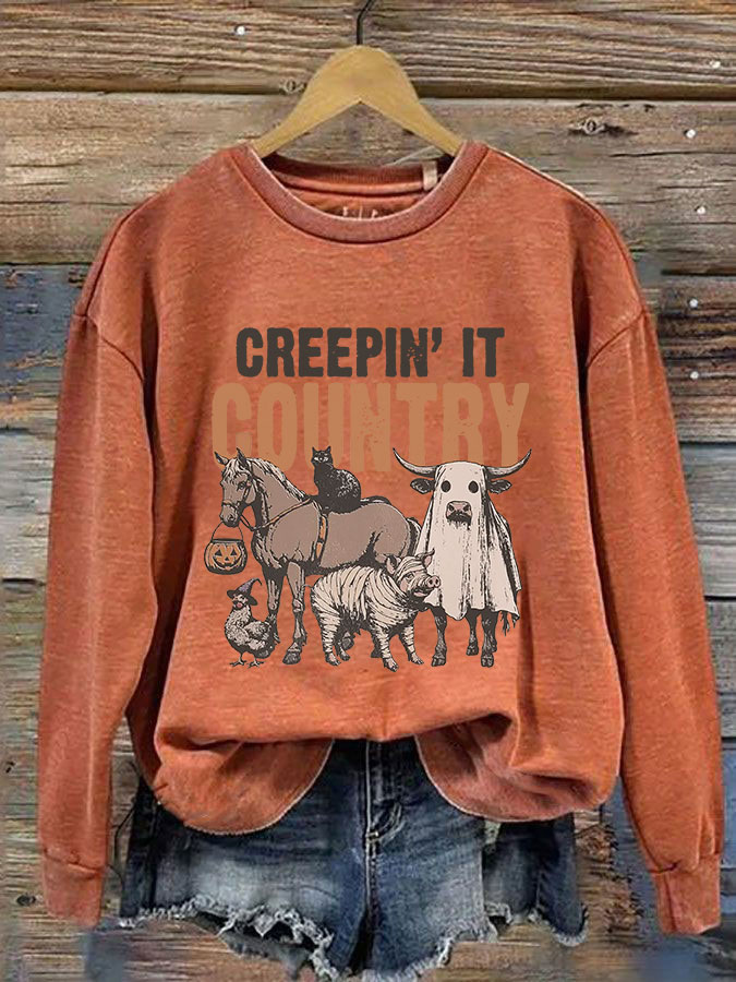 Damen Halloween Creepin It Country Bedrucktes Sweatshirt