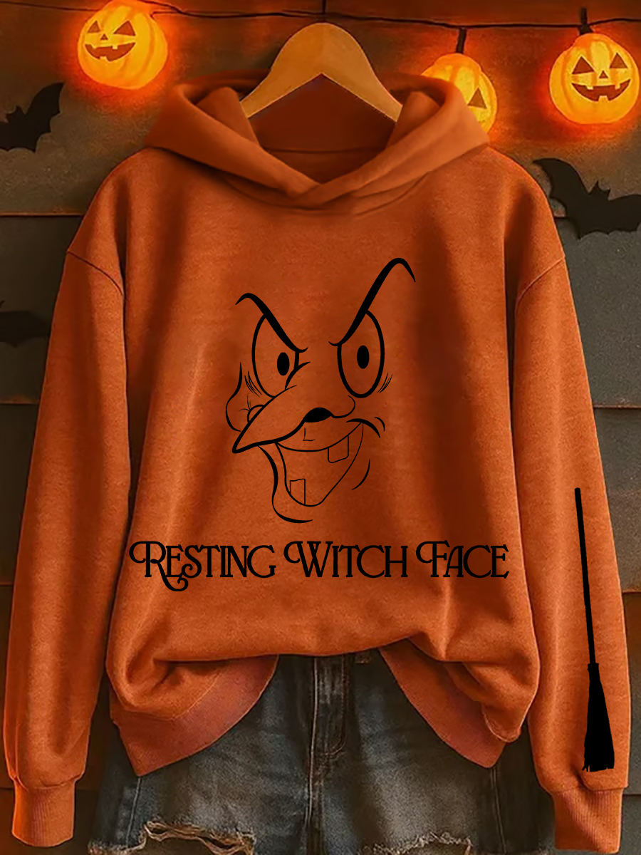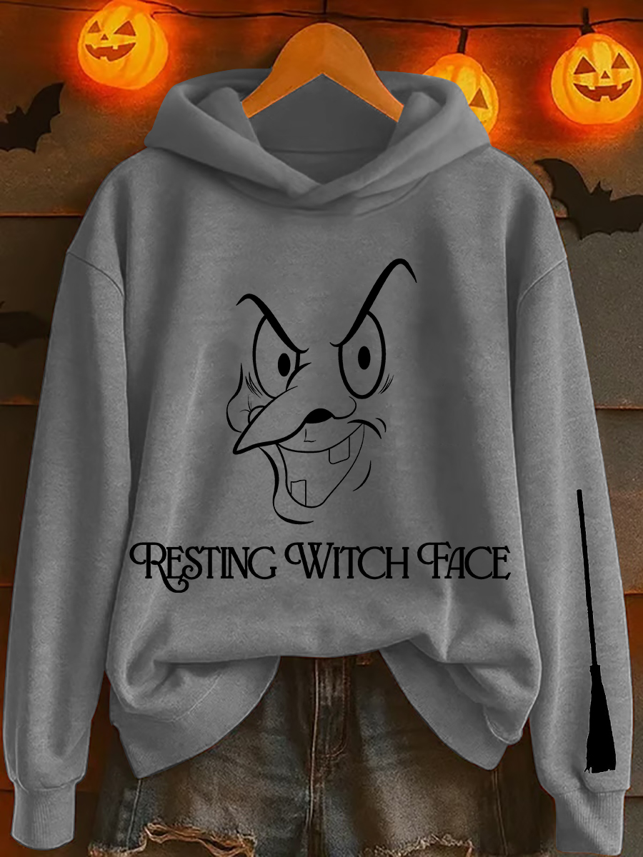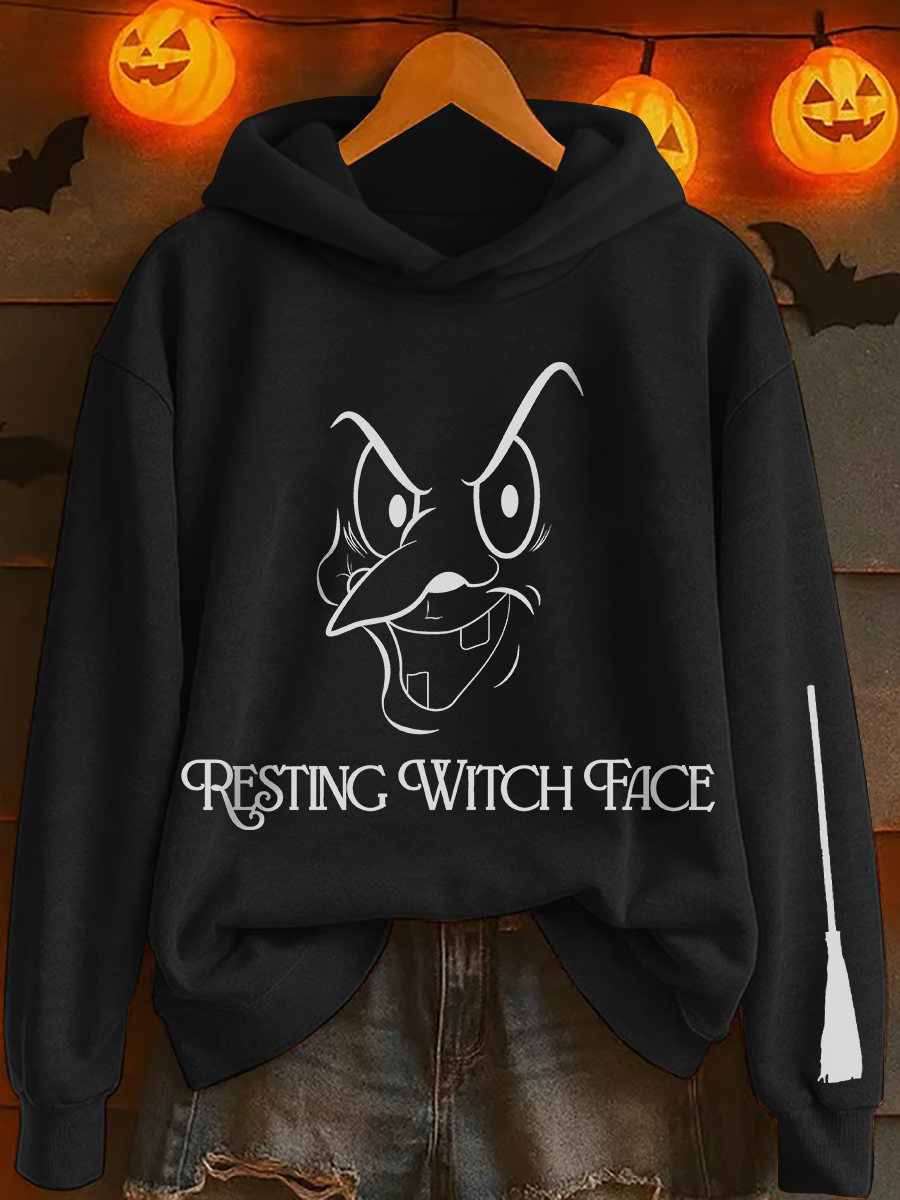 Damen-Kapuzen-Sweatshirt mit "ruhenden Hexen gesicht" bedruckt