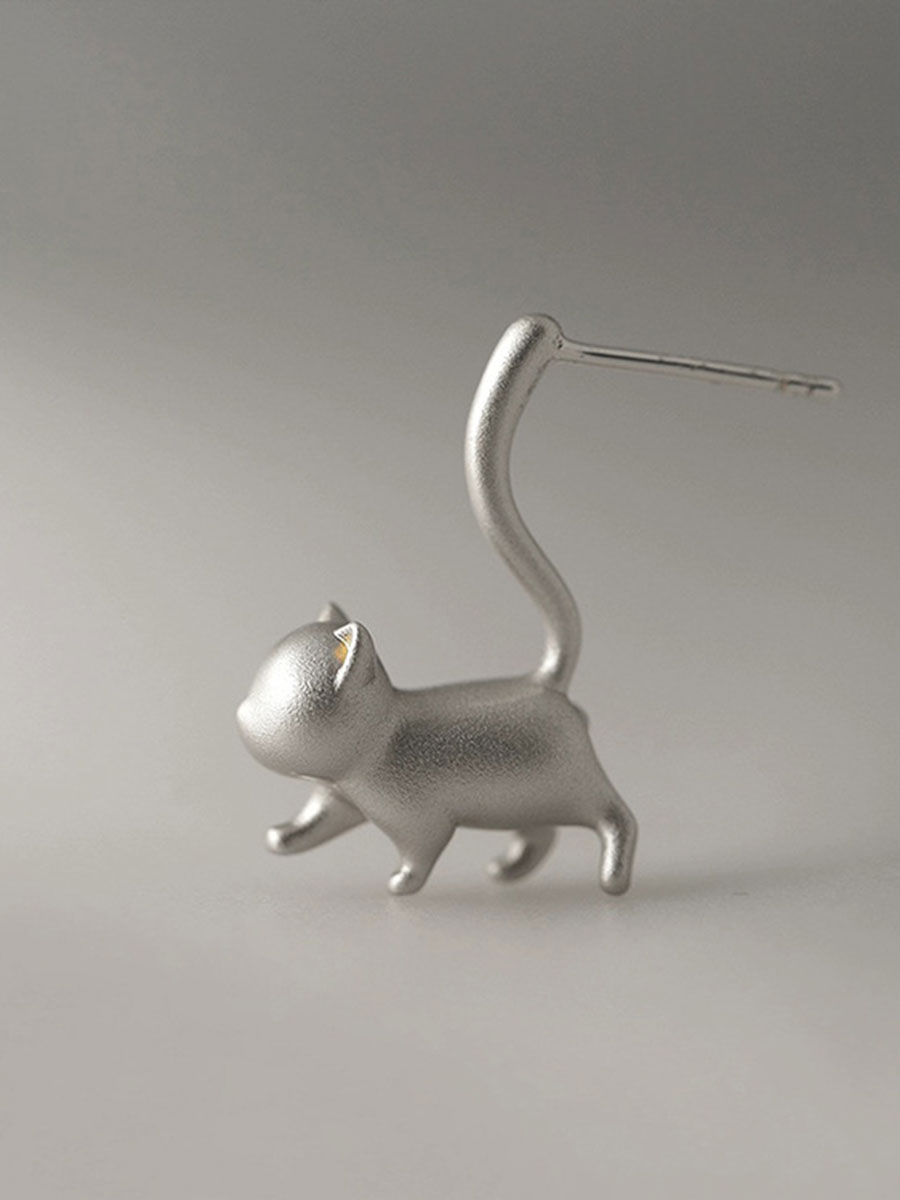 Damen Katze Silber Nadel Ohrringe (Paar)