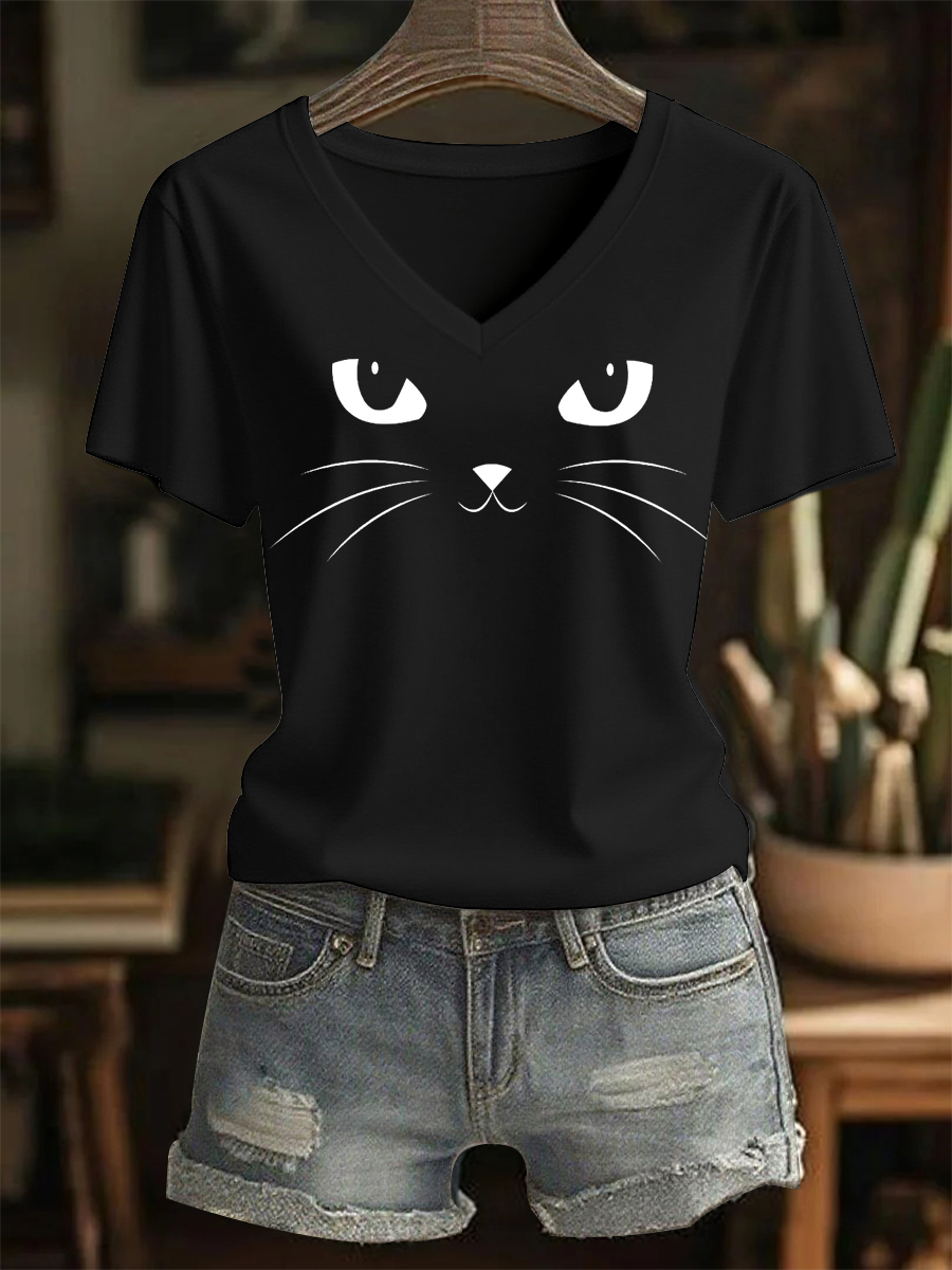 Damen Katzen druck Casual V-Ausschnitt T-Shirt
