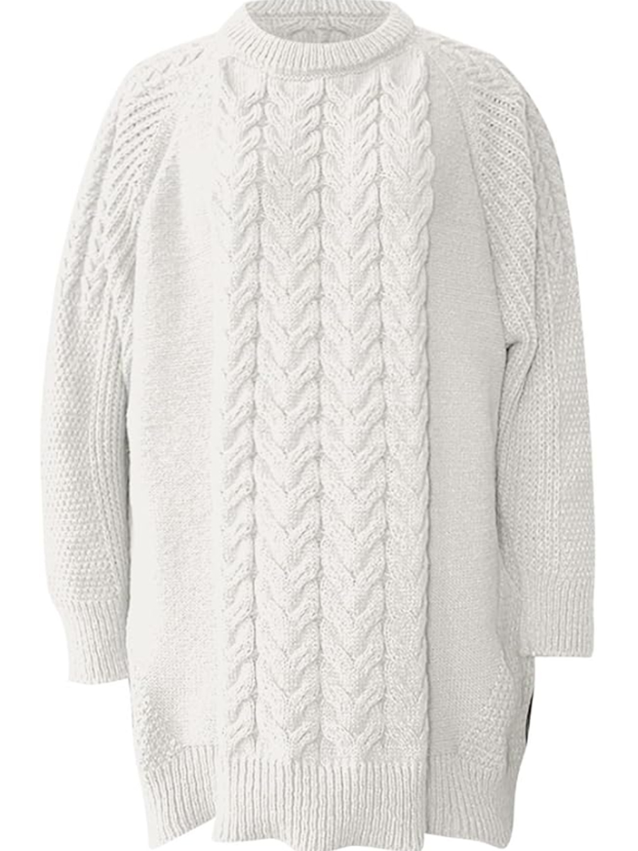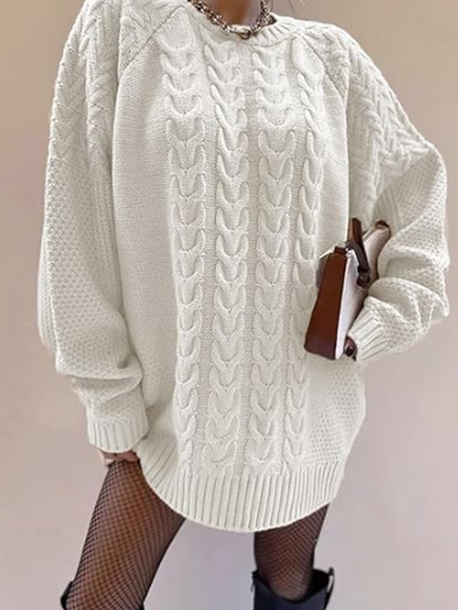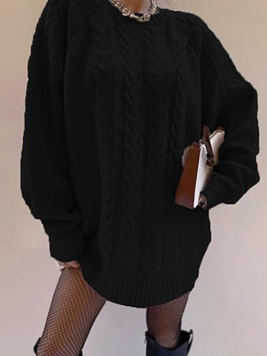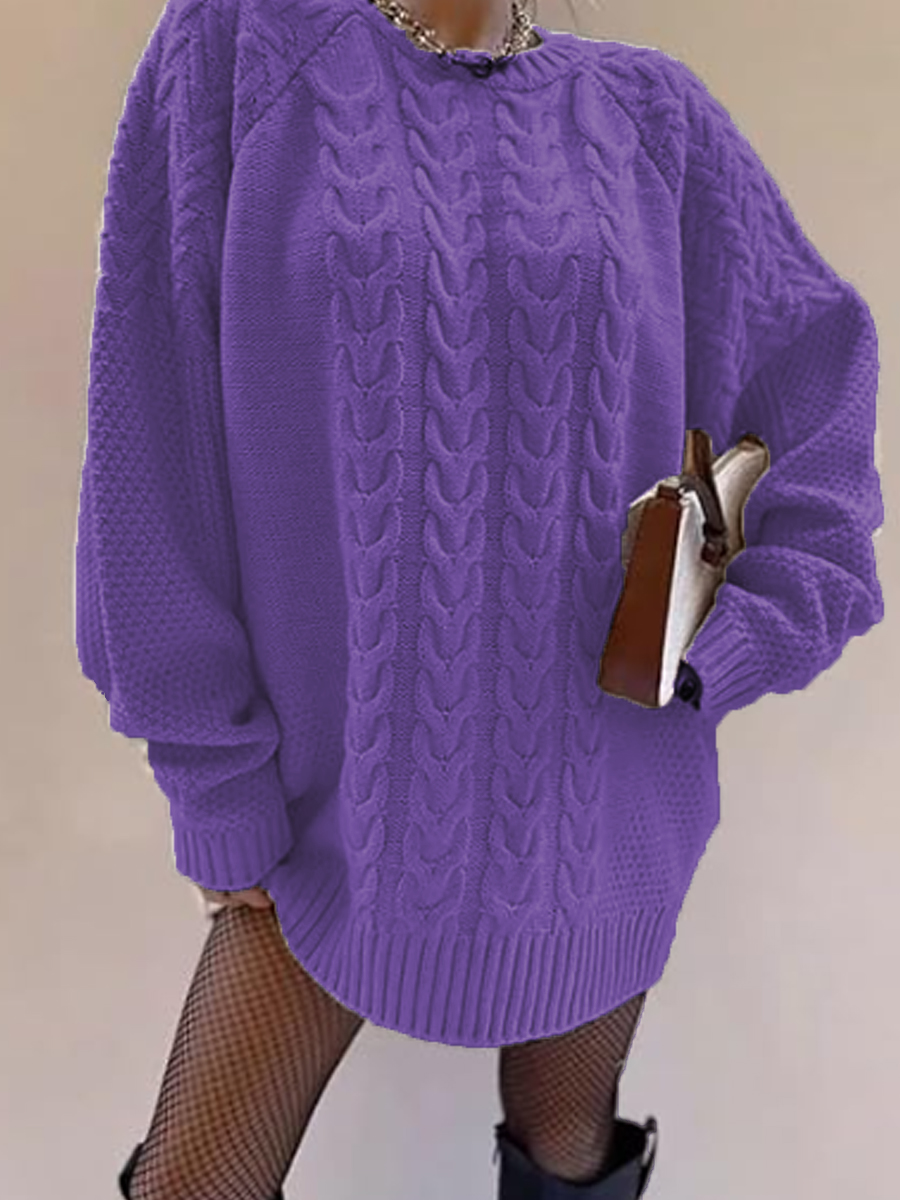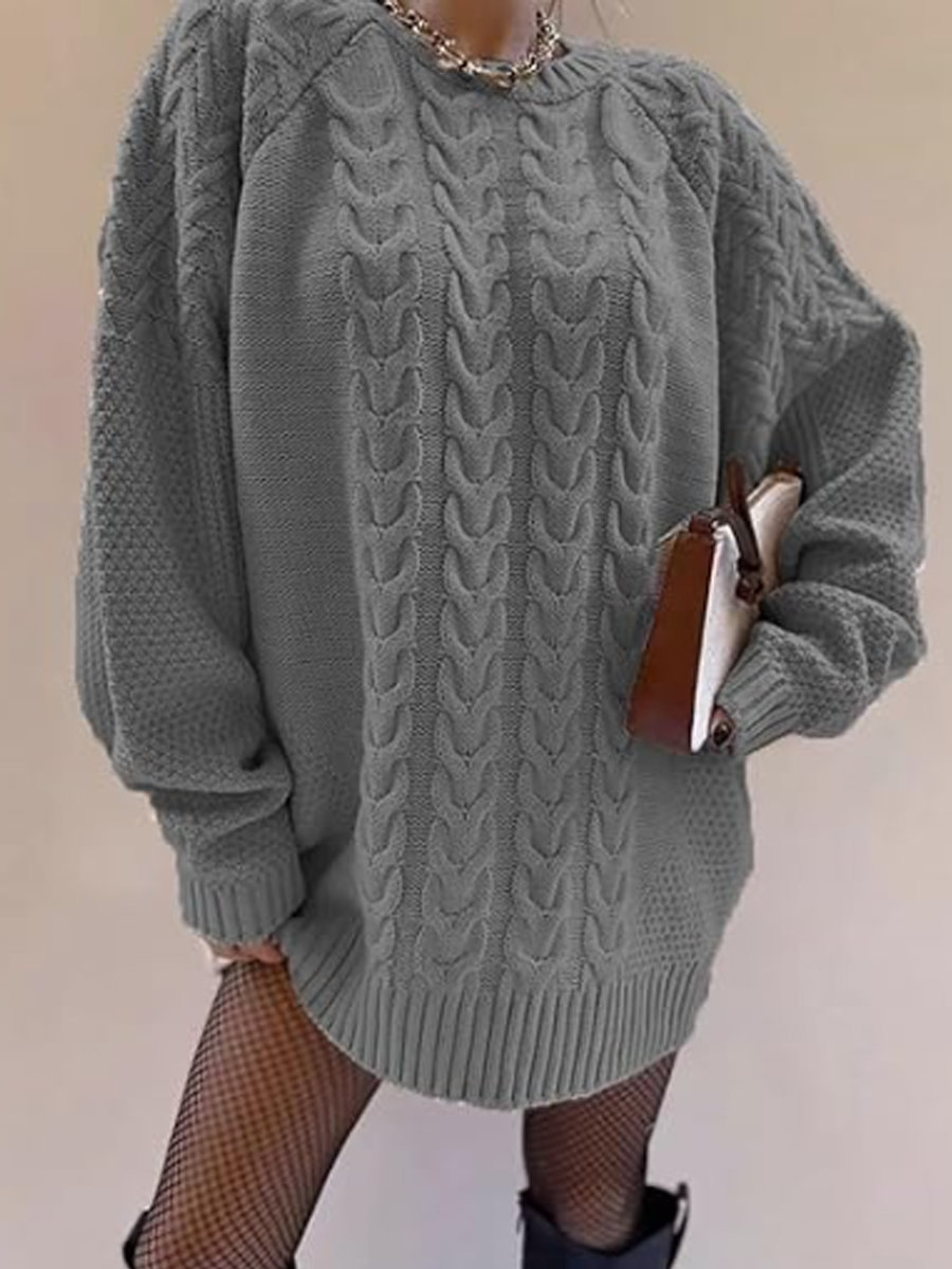 Damen Klobige Strick pullover Pullover mit Rundhals ausschnitt