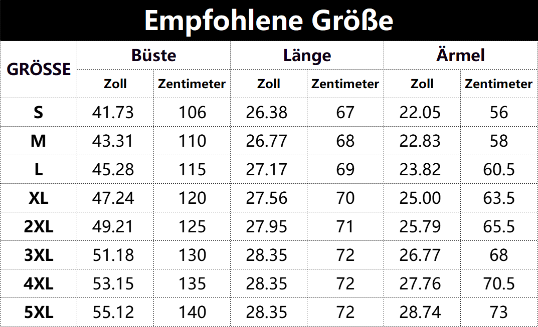 • Vorschlag:* Diese Daten wurden aus der manuellen Messung des Produkts erhalten, es kann um 0,03-0,06 ZOLL/1-3 CM aus geschaltet sein