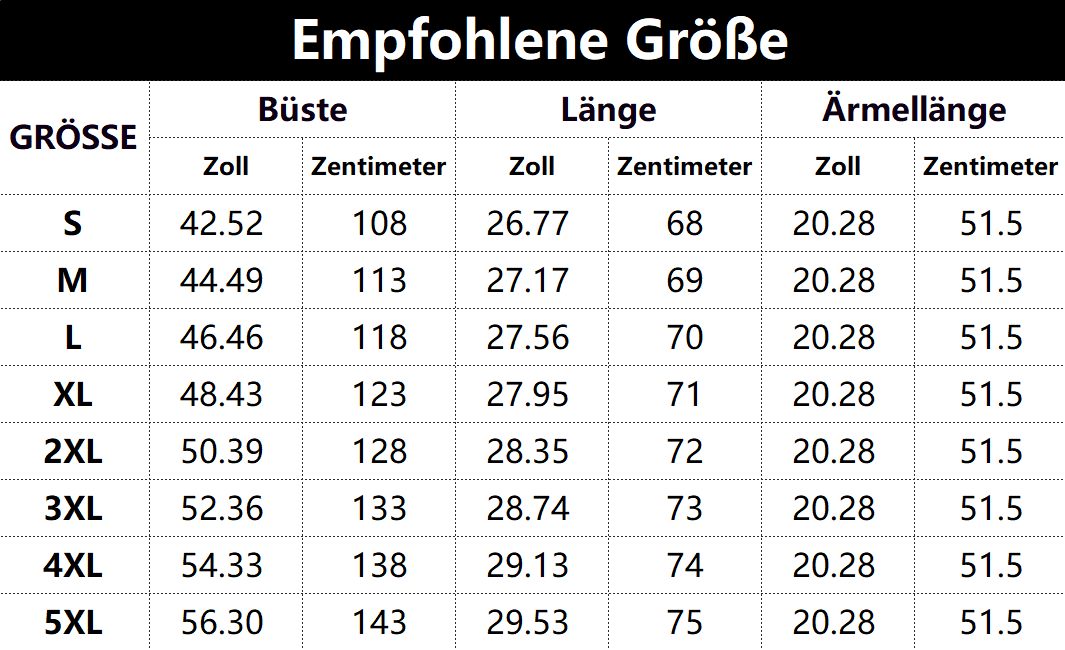 • Vorschlag:* Diese Daten wurden aus der manuellen Messung des Produkts erhalten, es kann um 0,03-0,06 ZOLL/1-3 CM aus geschaltet sein
