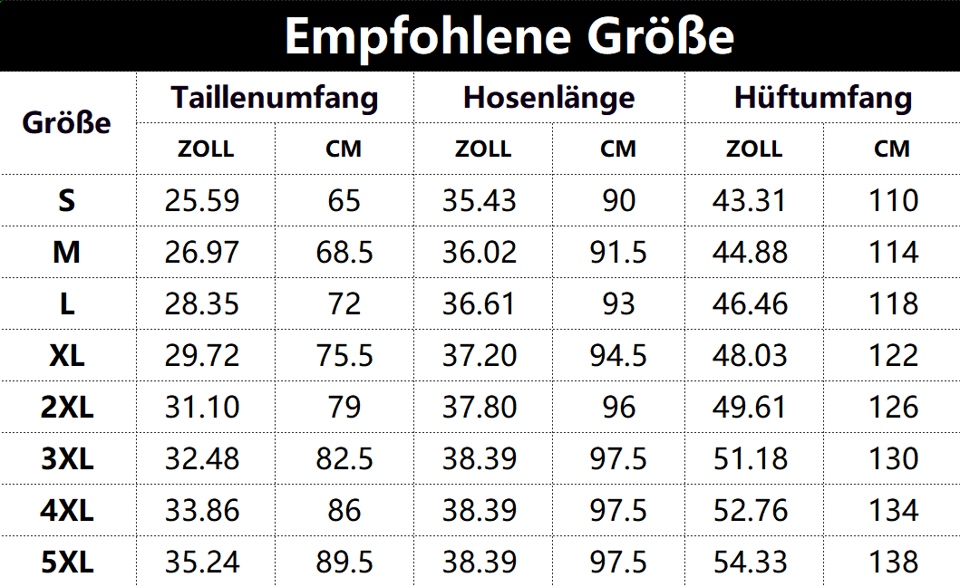 Größen tabelle: