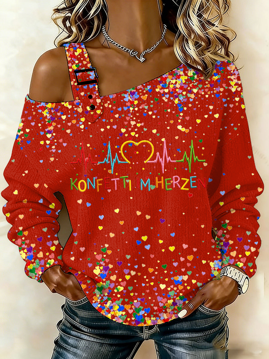 Damen-Kölner Karneval Konfetti im Herzen Print lässiges schulter freies Top
