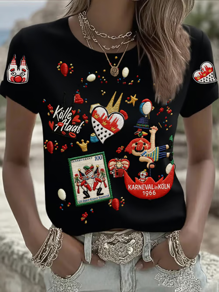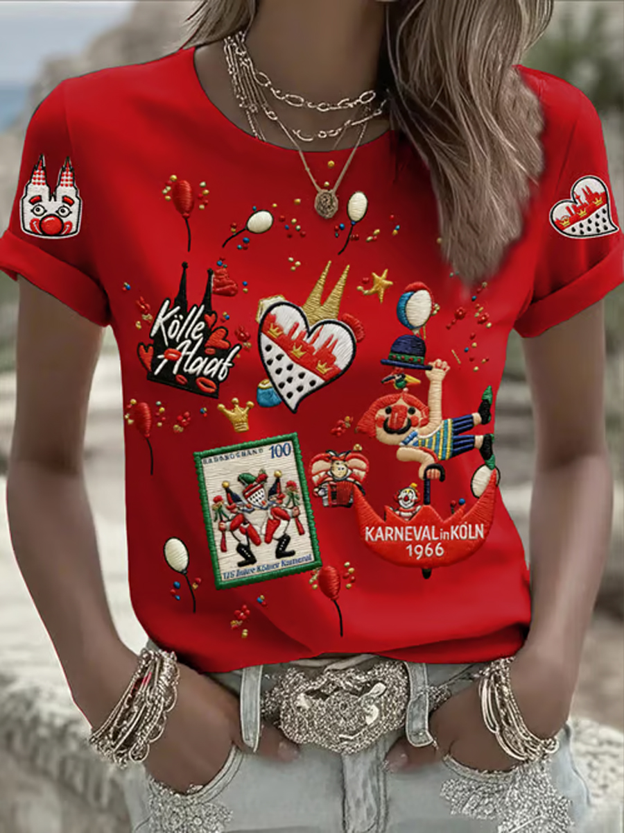 Damen Kölner Karneval Rundhals-T-Shirt mit kurzen Ärmeln