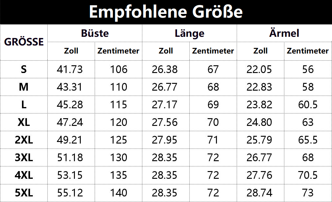 • Vorschlag:* Diese Daten wurden aus der manuellen Messung des Produkts erhalten, es kann um 0,03-0,06 ZOLL/1-3 CM aus geschaltet sein