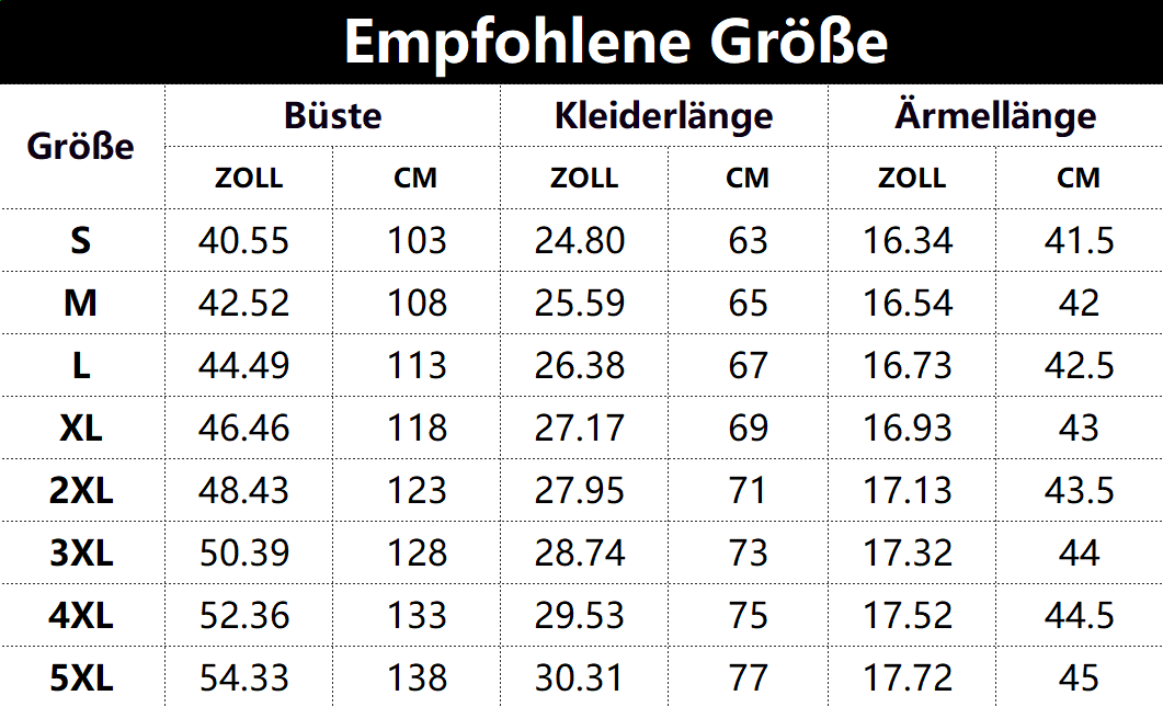 Größen tabelle: