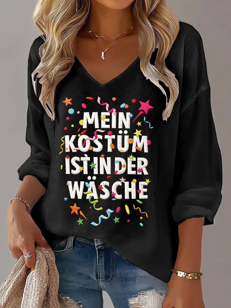 Damen Kölner Karnevals druck Lässiges V-Ausschnitt Langarm-Top