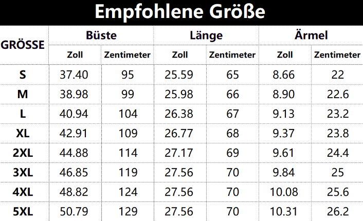 • Vorschlag: * Diese Daten wurden durch manuelle Messung des Produkts erhalten und können um 0,03-0,06 Zoll/1-3 Zentimeter abweichen.